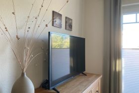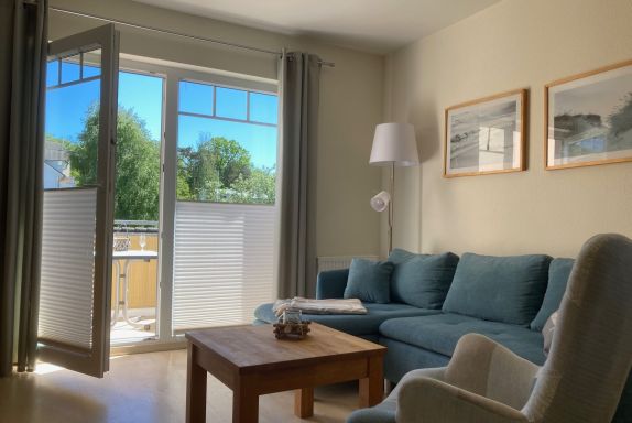 Genießen sie ihren Urlaub in der wunderschönen Anlage Strandwiese. Nur 500m vom Strand entfernt liegt diese gemütlich und modern eingerichtete Wohnung im 1. Obergeschoss mit ca. 50 m² Wohnfläche und einem sonnigen Südbalkon. Die sehr freundliche Wohnung kann mit bis zu 3 Personen genutzt werden. Ein separates Schlafzimmer und eine 1,50x2,00 m große Schlafcouch, bieten Platz für 3 Personen. Praktisch erreichbar befindet sich ein Außenabstellraum für Fahrräder o. ä. vor dem Objekt. Der Wohnung ist der kostenlose Stellplatz Nr. 14 zugeordnet. Zwei 28er Damenfahrräder stehen für 10,00 / Fahrrad für Ihren gesamten Aufenthalt zur Verfügung. Ebenso haben sie kostenloses WLAN.