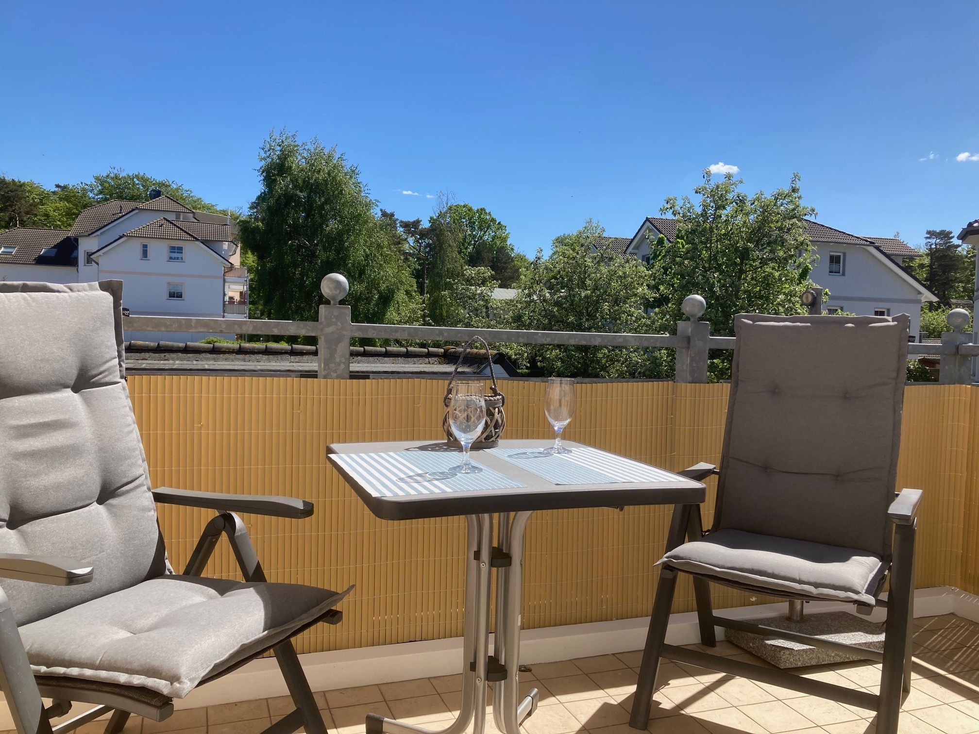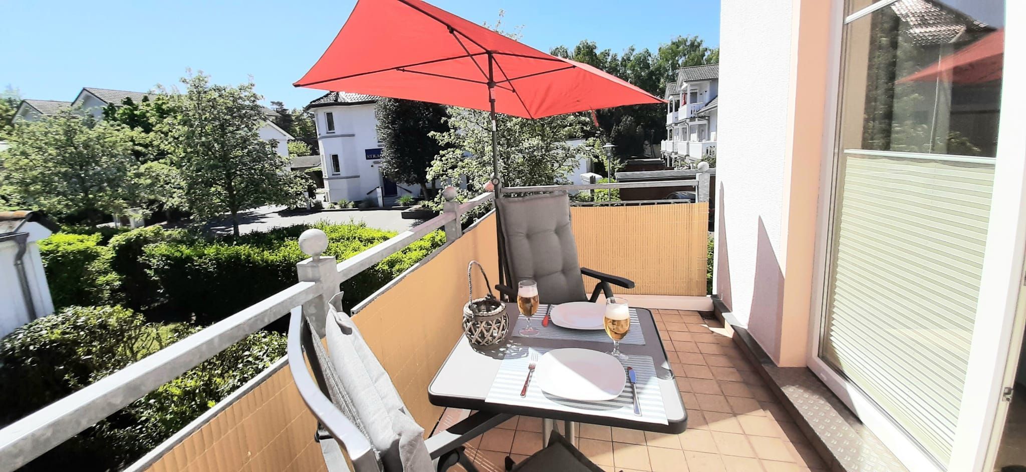 • Balkon: Südausrichtung, Tisch, 4 Stühle, Sonnenschirm, Balkonumrandung