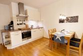 • Küche: Die moderne Einbauküche ist ausgestattet mit Cerankochfeld, Backofen, Geschirrspüler, Dunstabzugshaube, Kühlschrank mit Gefrierfach, Kaffeemaschine, Mikrowelle, Wasserkocher, Toaster und mit weiteren diversen Küchenutensilien. Bei den lokalen Händlern findet man stets fangfrische Zutaten und andere Leckereien. Wer gerne kocht, findet eine offene Küche mit genug Platz und einem Esstisch samt Bestuhlung für 4 Personen in der Wohnung Strandgut vor.