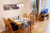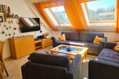 • Wohnzimmer: Im hellen und großzügigen Wohnzimmer mit Essbereich findet man alles was es für den Urlaub braucht. Ein kleiner Couchtisch, Sofa, TV-Board mit Flachbildfernseher, Receiver, DVD-Player und Ministereoanlage bieten genug Abwechslung nach einem erlebnisreichen Tag in Graal-Müritz und Umgebung.