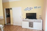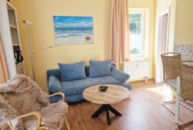 Der Wohnbereich ist komfortabel mit einer modernen Schlafcouch, Sessel, Kabel-TV mit Flachbildfernseher,