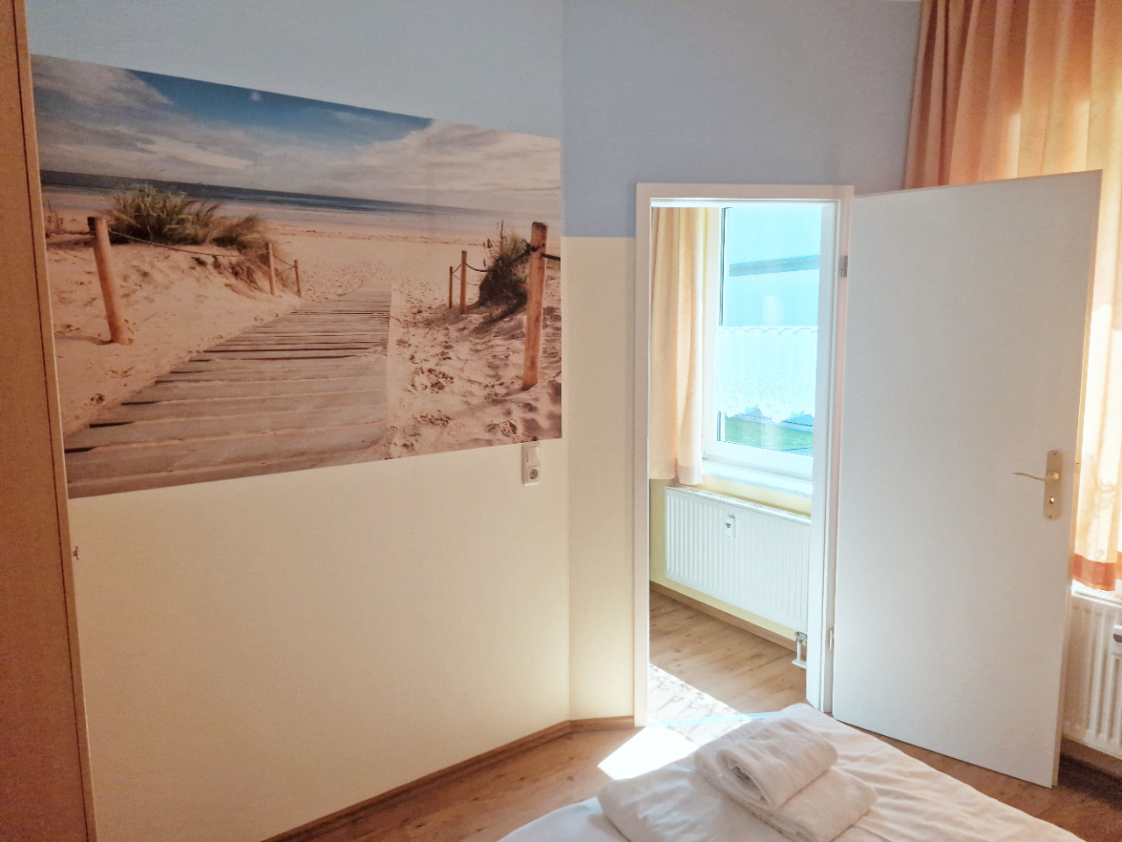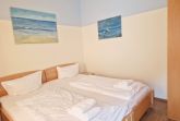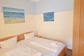 Das separate Schlafzimmer ist mit 2 Einzelbetten, die mittels einer Mittelkonsole den Komfort eines Doppelbetts bieten, 2 Eckkleiderschränken und kleinen Ablagemöglichkeiten neben den Betten ausgestattet.