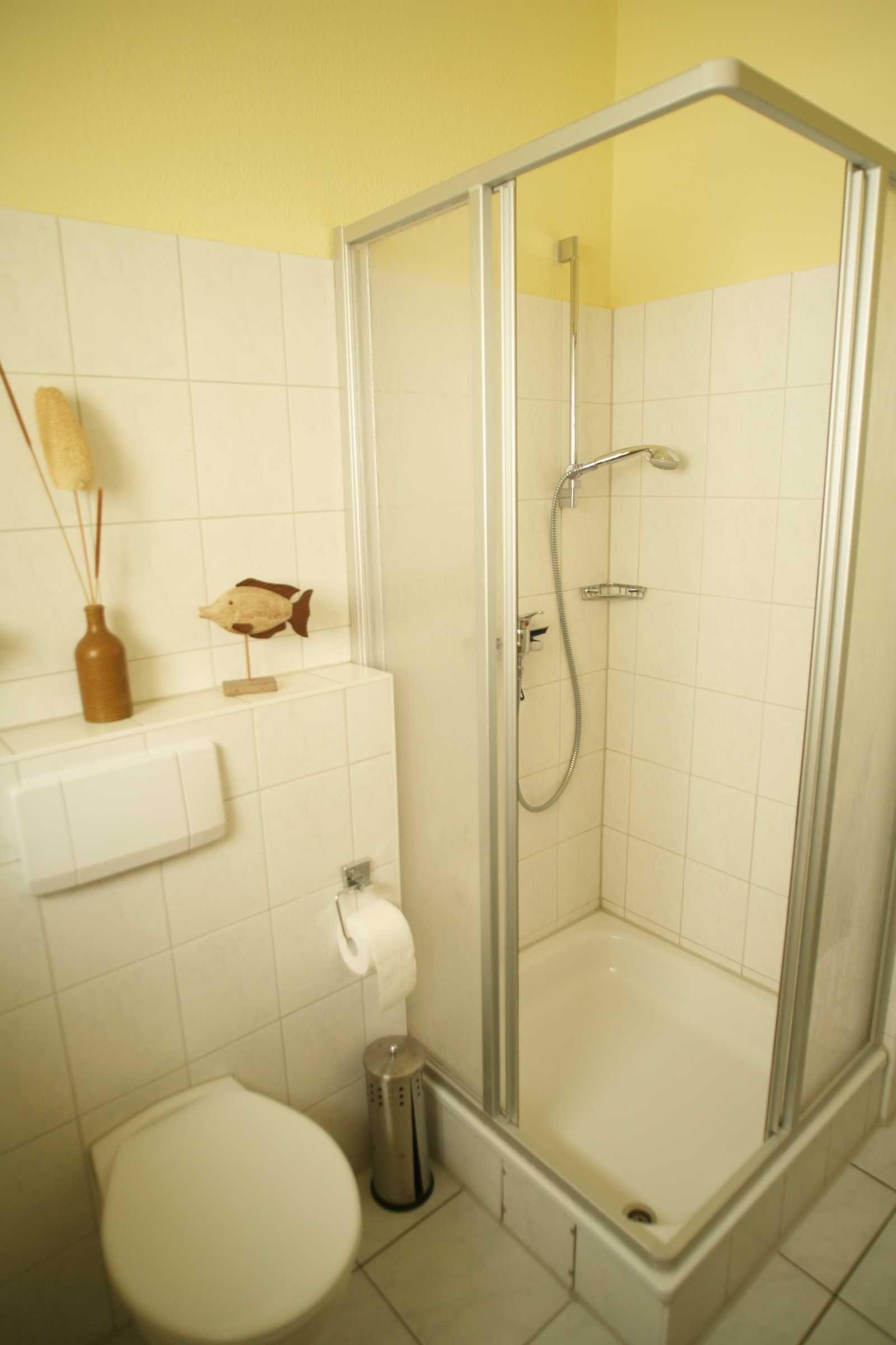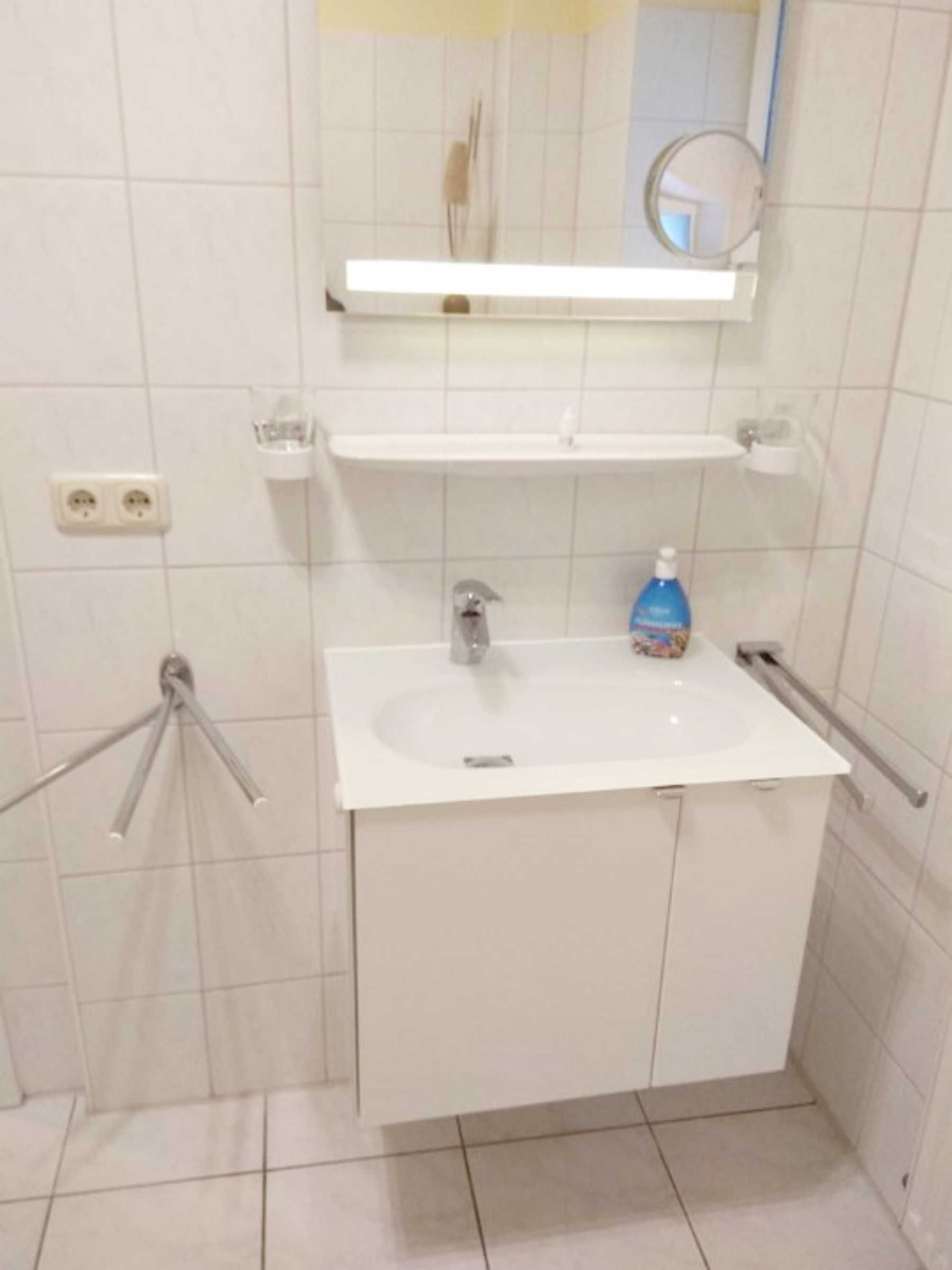 Das Bad verfügt über eine Dusche, ein Handwaschbecken und WC, sowie genügend Stauraum und Abstellfläche. Ein Fön ist vorhanden.