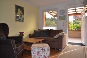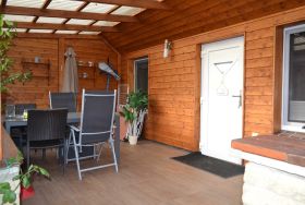 Unser Häuschen ist mit allem sehr wohnlich ausgestattet, was Sie für Ihre Urlaubstage benötigen. Der gemütliche Kamin und die Fußbodenheizung sorgen auch an kühleren Tagen für warme Behaglichkeit. Besonders stolz sind wir auf unsere große, überdachte Terrasse Sie werden sich bei uns wohl fühlen! Da der Garten rundum eingezäunt ist, sind Haustiere bei uns auch herzlich willkommen! Auf der Terrasse und im Garten kann selbstverständlich geraucht werden!
