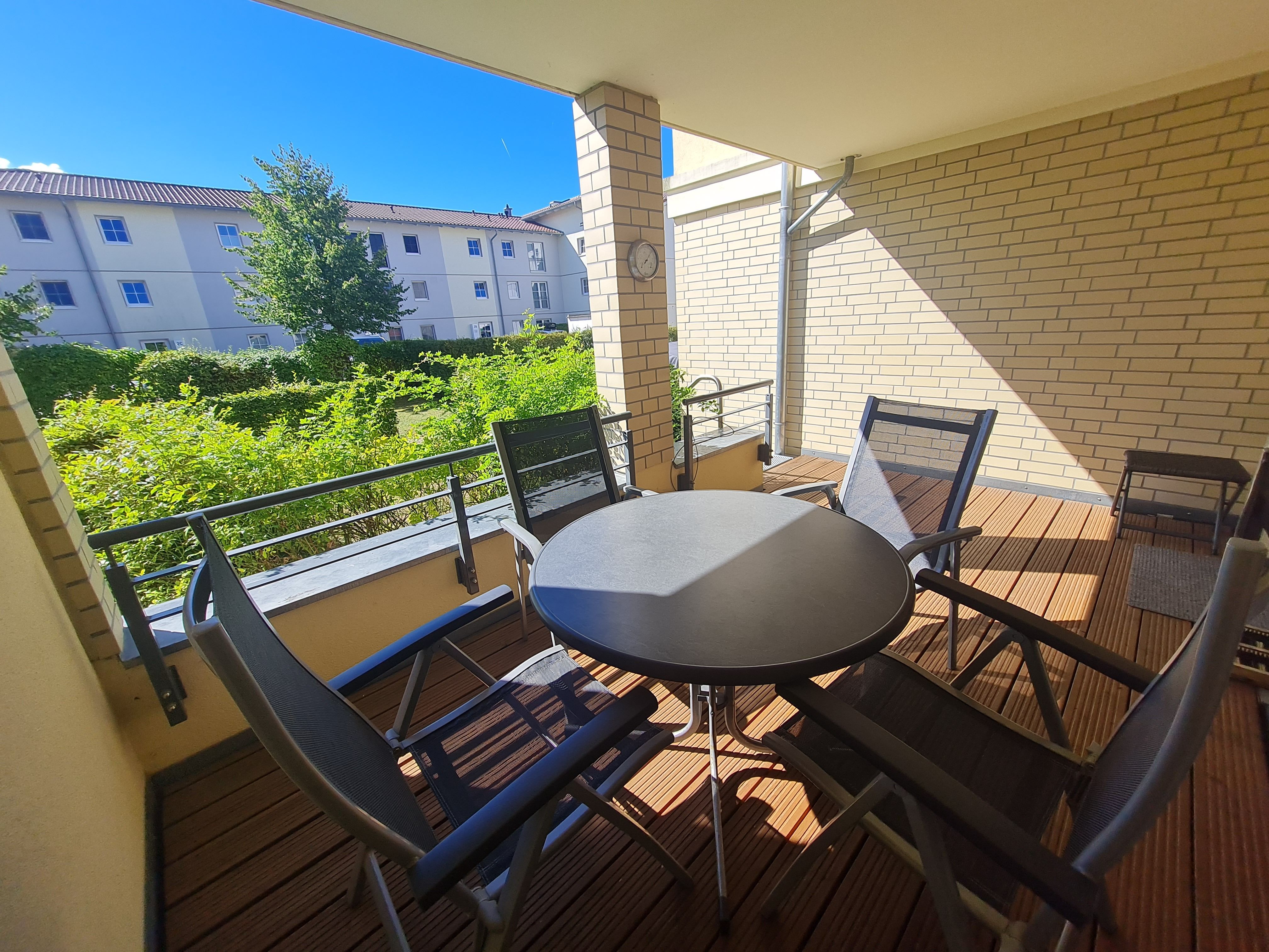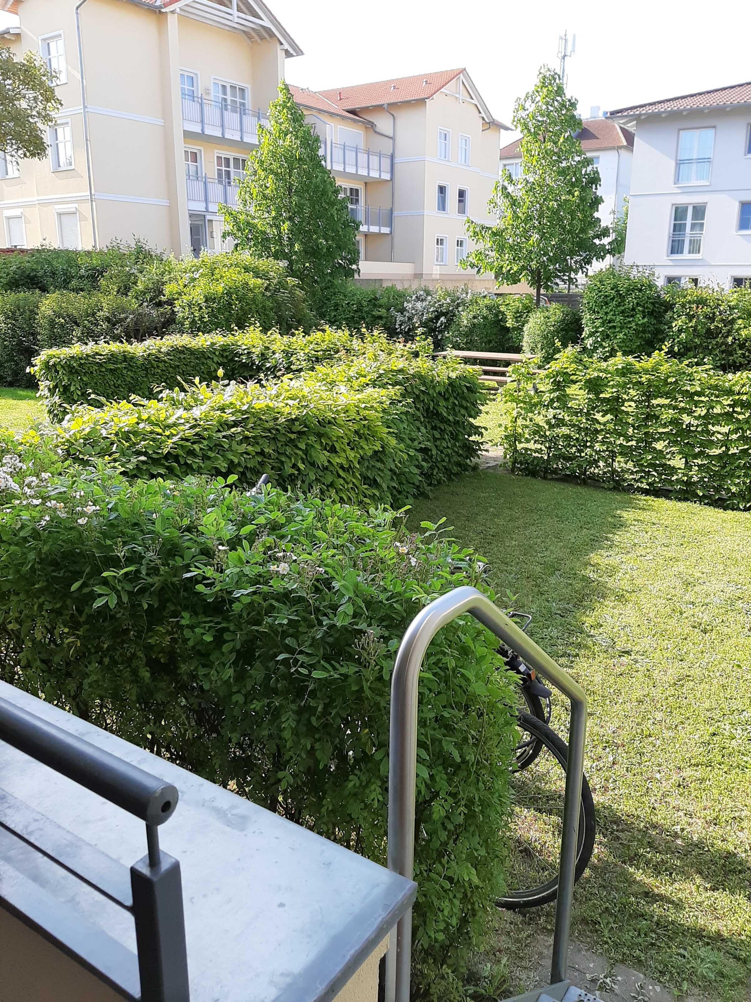 • Terrasse: Südausrichtung mit Balkonmöbeln und kleinem Garten