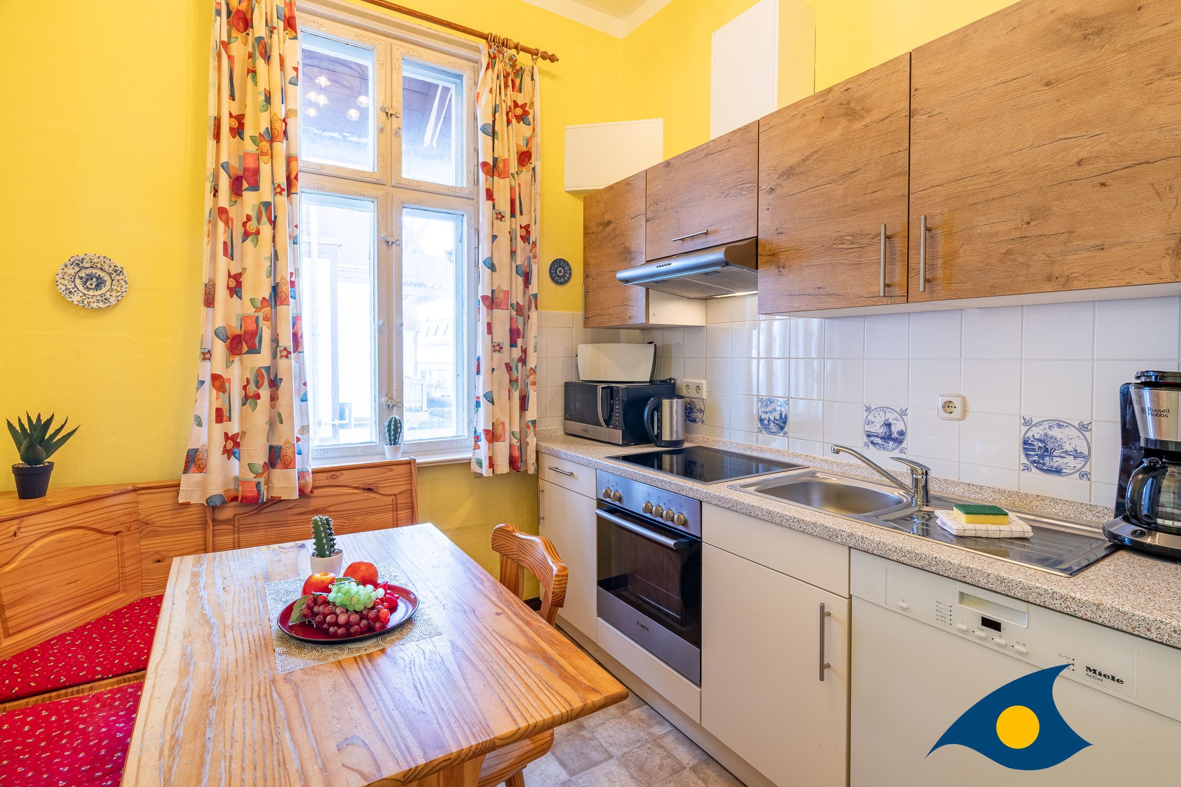 In der separate Küche mit Sitzecke können Sie nicht nur den neuen Tag angenehm beginnen sondern auch in geselliger Runde gemeinsam kochen.