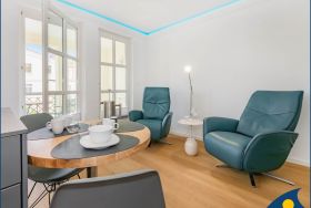 Zwei bequeme Relax-Sessel mit Liegefunktion in geschmeidigem hochwertigem Lederbezug laden zum gemütlichen Fernsehabend, zum Lesen oder zum Musik hören (Bose Soundbox) ein. Dazu sorgt die indirekte Beleuchtung an der Decke für eine angenehme Atmosphäre und ein einzigartiges Ambiente.