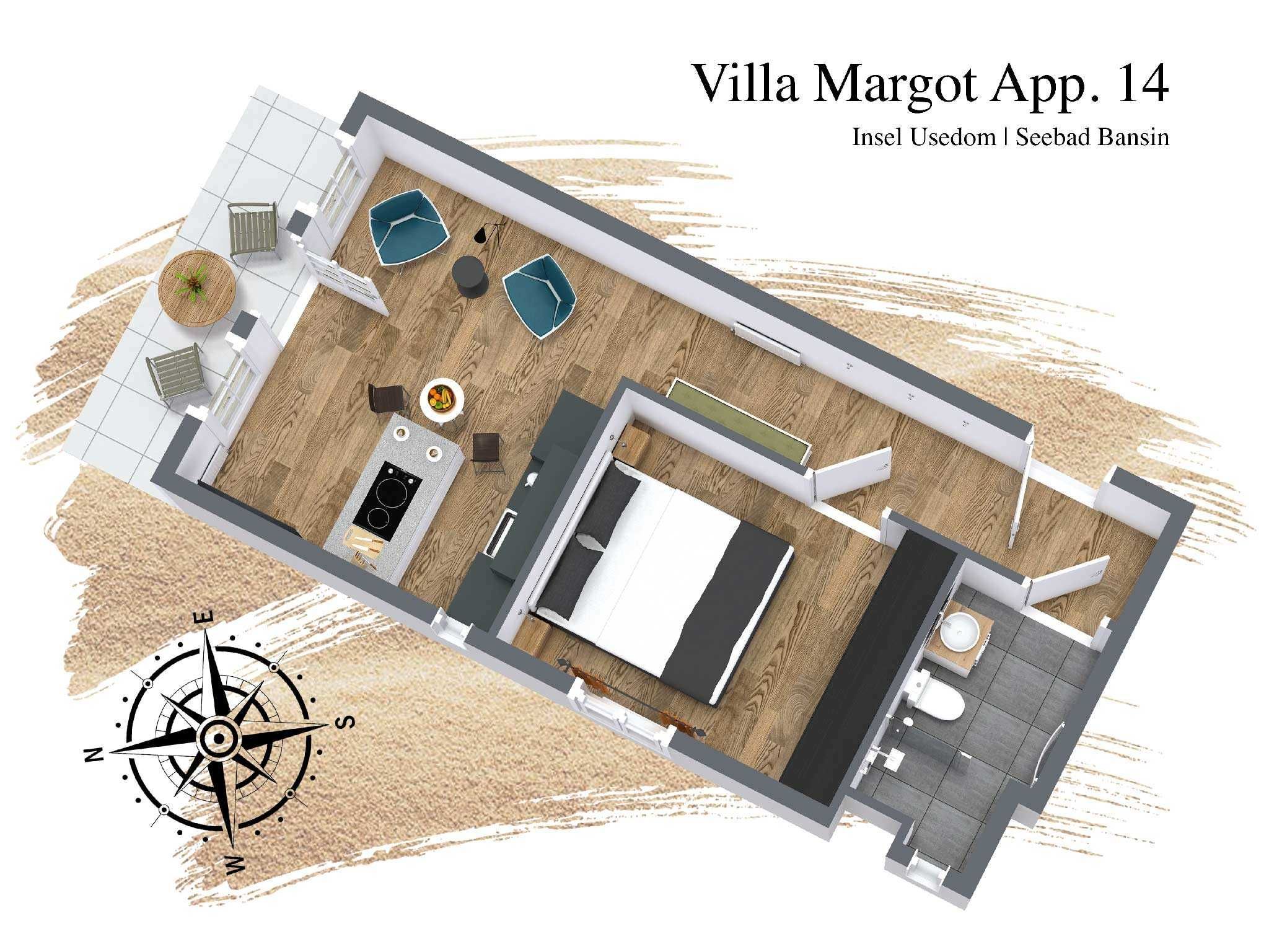 Die Villa Margot ist nur 50 m vom Strand und der Promenade entfernt und gleichzeitig ein idealer Ausgangspunkt um die Kaiserbäder sowie das wald- und binnenseereiche Hinterland zu erkunden. Ein Strandzugang liegt genau vor dem Haus.