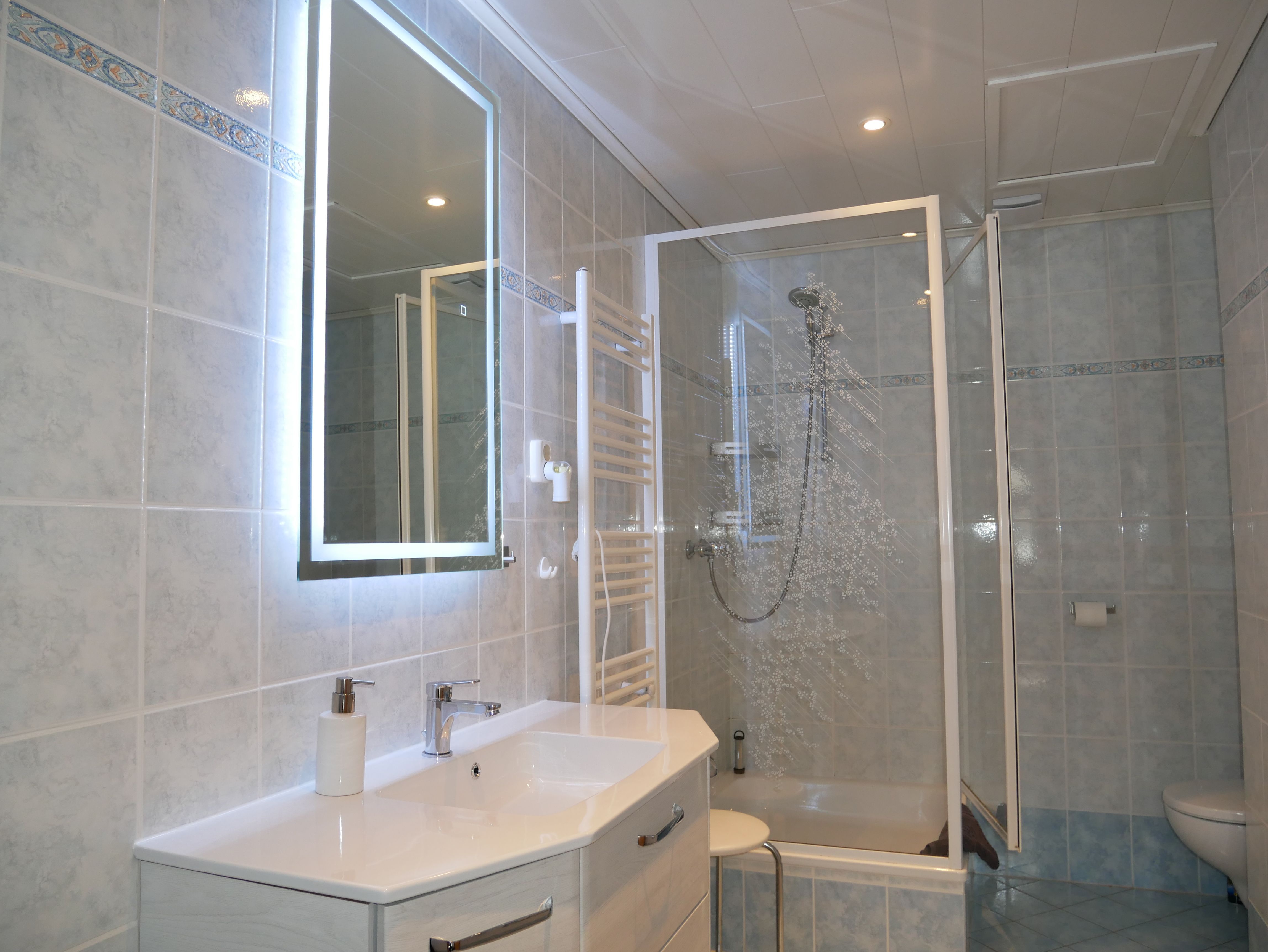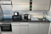Auf Insgesamt 47qm befindet sich eine kombinierte Wohnküche mit Backofen und Herd, ein Schlafzimmer mit einem Doppelbett und ein Badezimmer mit Dusche.