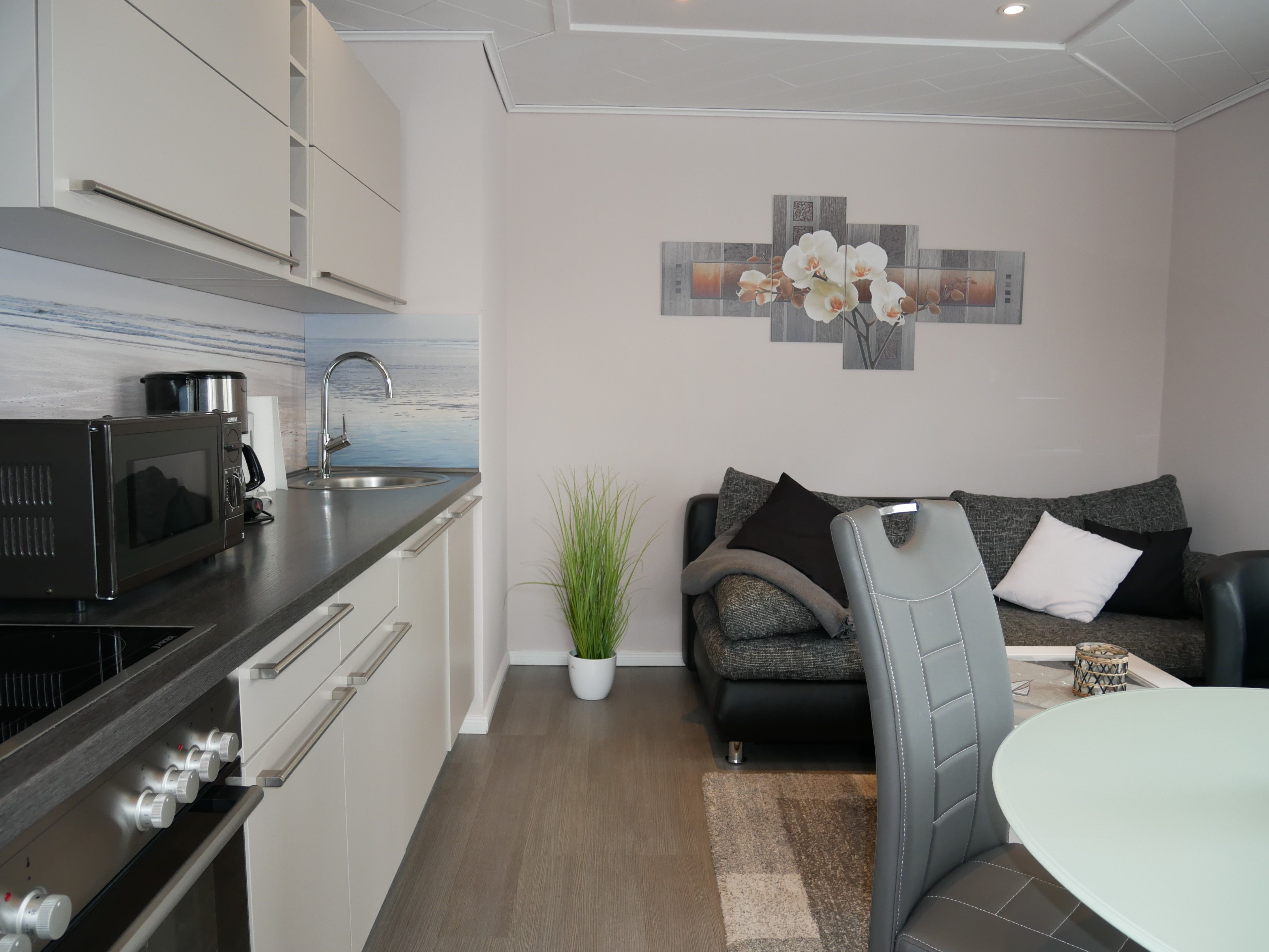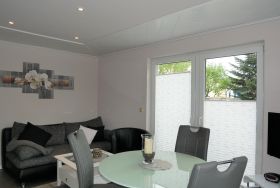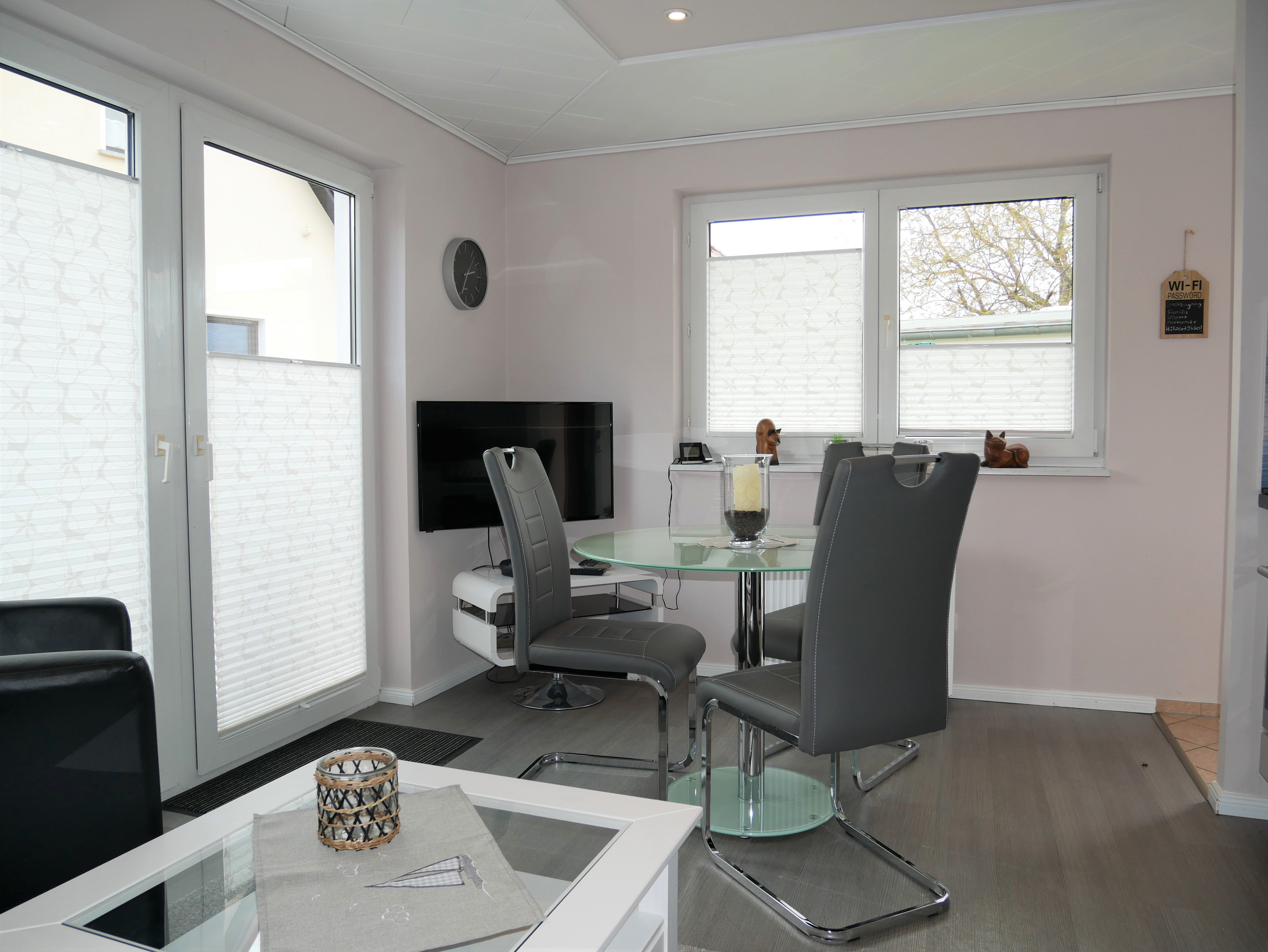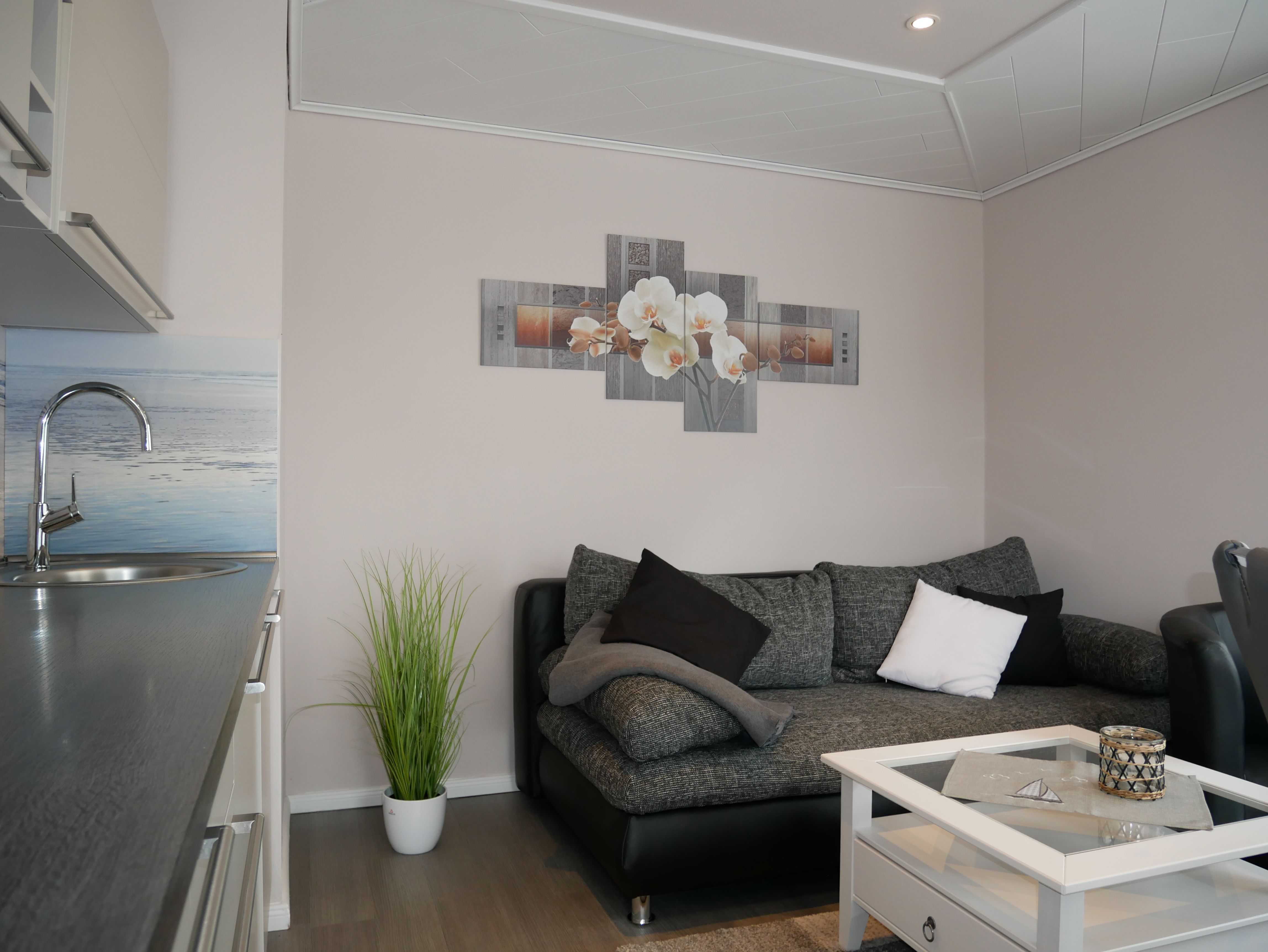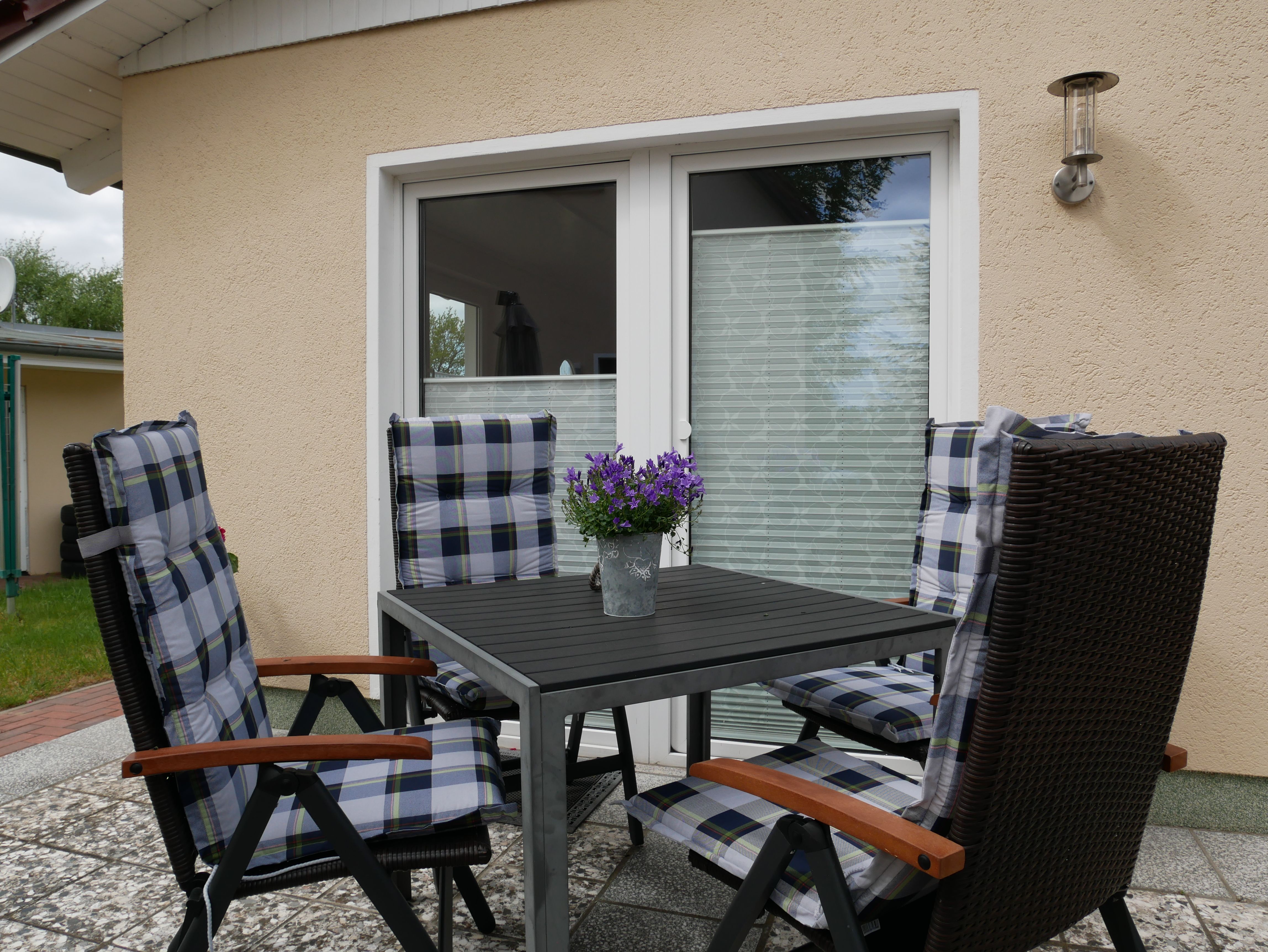 Die 2-Raumwohnung von 47m² im separaten Ferienhaus, auf dem Grundstück des Vermieters, verfügt über einen Wohnraum mit Küchenzeile, ein separates Schlafzimmer und ein Bad mit Dusche und WC. Die Wohnung ist geeignet für 2 Personen und eine Aufbettung im Wohnzimmer. Die Küchenzeile im Wohnraum ist komplett ausgestattet mit einem Herd, Kühlschrank, Wasserkocher, Toaster, Kaffeemaschine und einer Mikrowelle. Im Wohnraum befindet sich ein Essplatz für 3 Personen, eine Doppelbettcouch, ein Flachbild-SAT-TV und ein Radio. Das Schlafzimmer ist mit einem Doppelbett, einem großen Kleiderschrank und 2 Nachttischen ausgestattet. Eine gemütliche Sitzecke auf der Terrasse mit Gartenmöbeln und Grillmöglichkeit lädt zum Relaxen ein. Ein PKW-Stellplatz ist inklusive. Falls sie mit einem Kleinkind anreisen, bringen sie bitte ein Reisebett mit. Die Bettwäsche ist inklusive, Handtücher bitte selbst mitbringen.