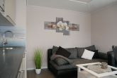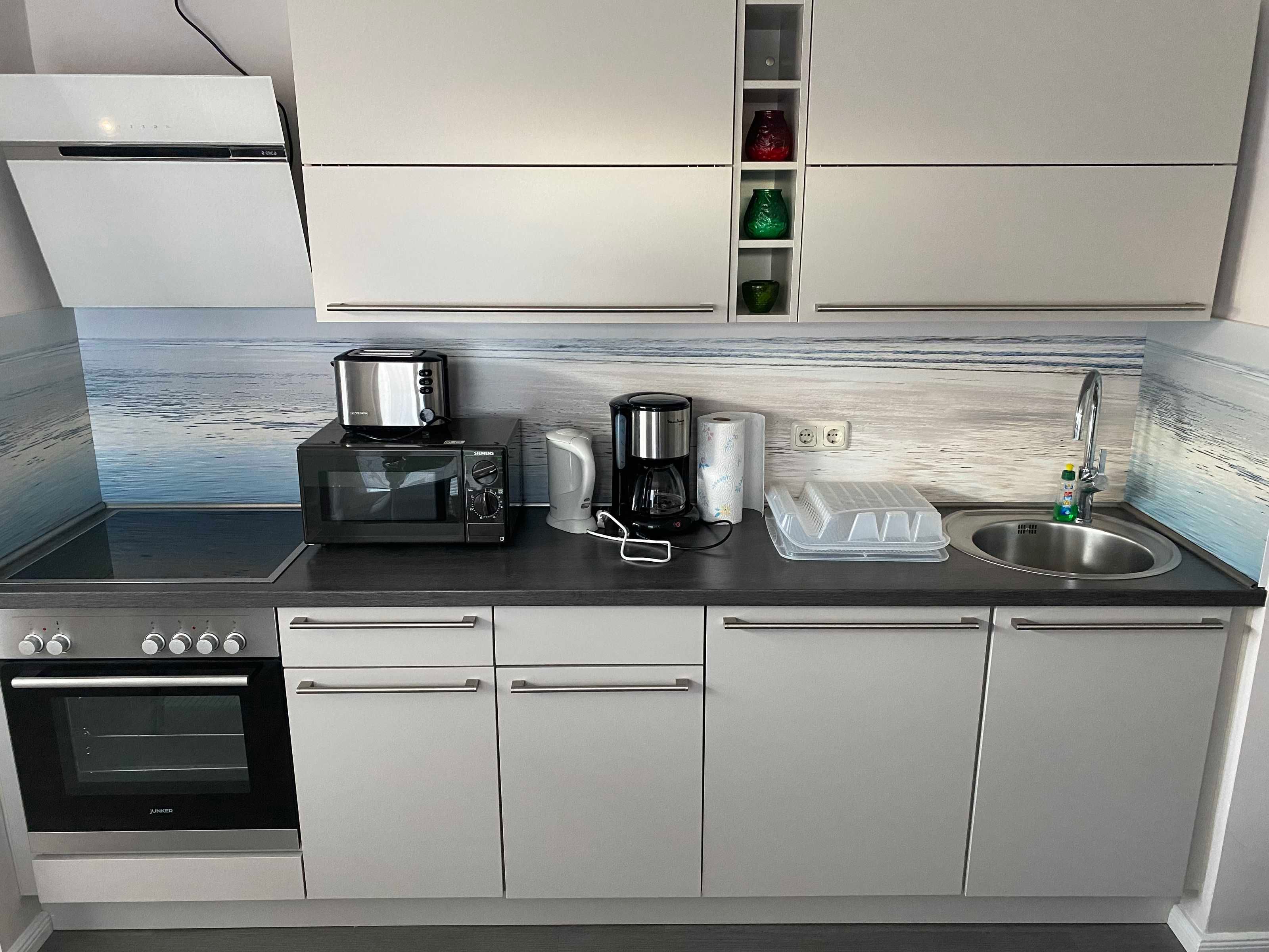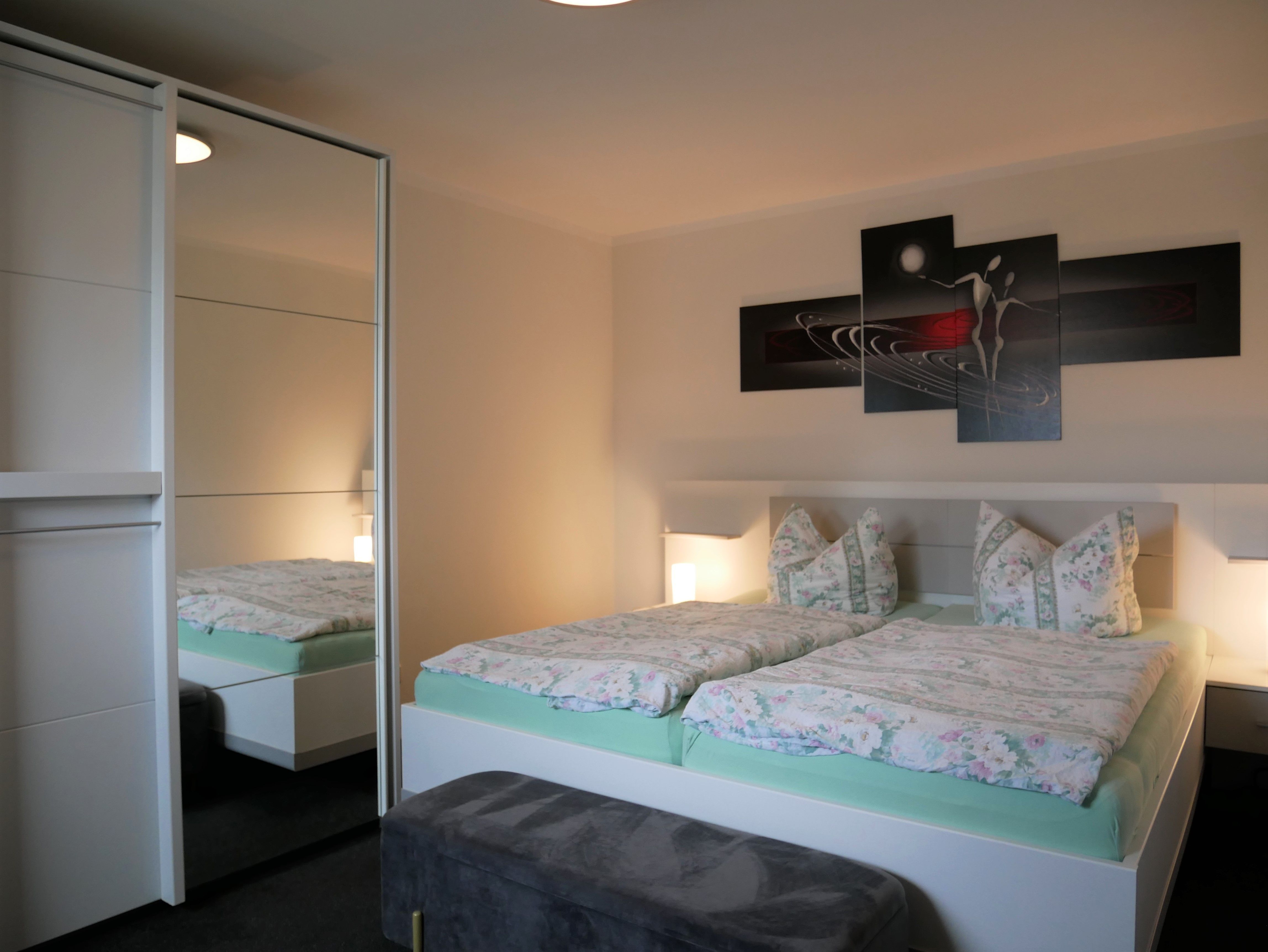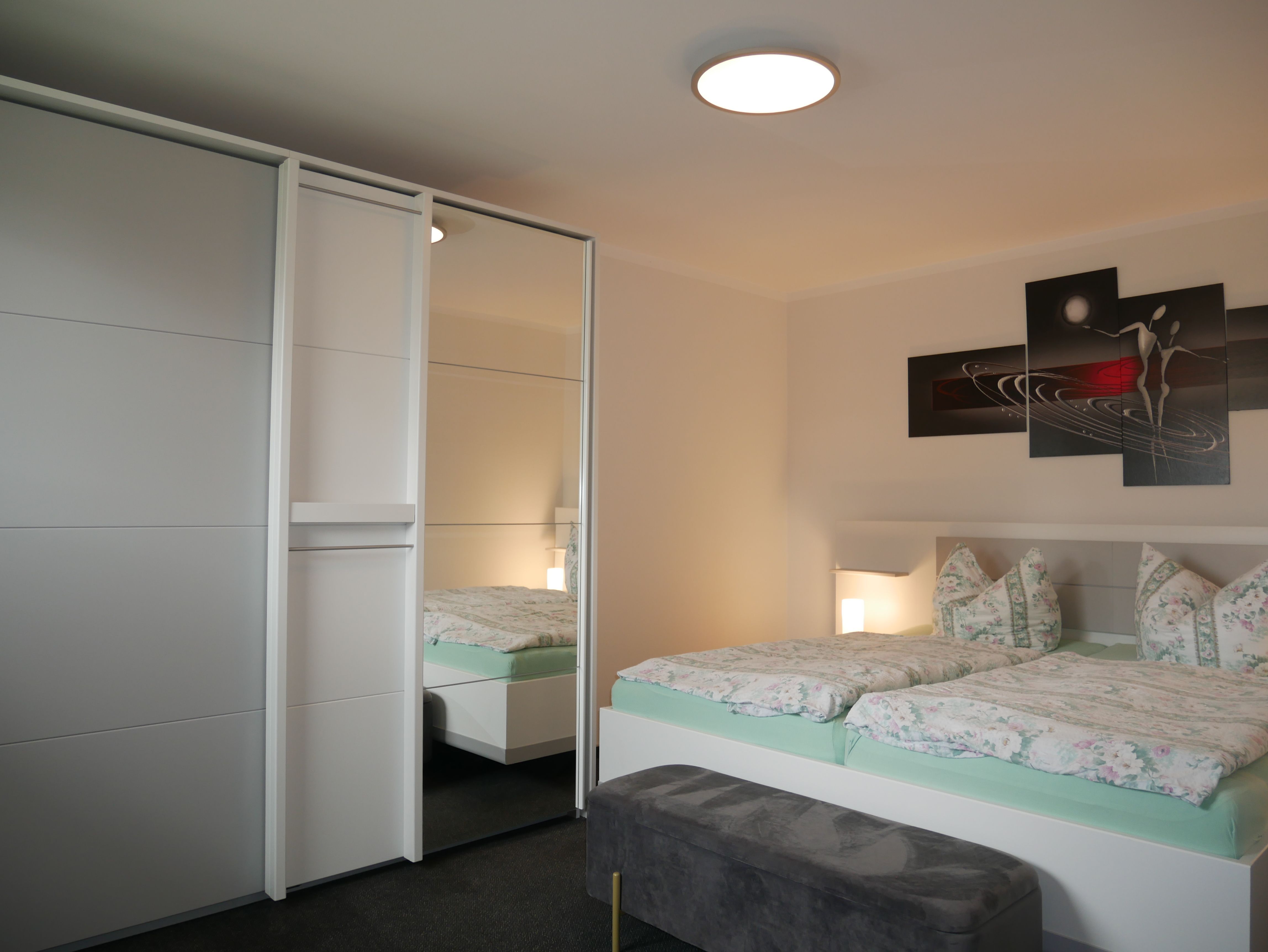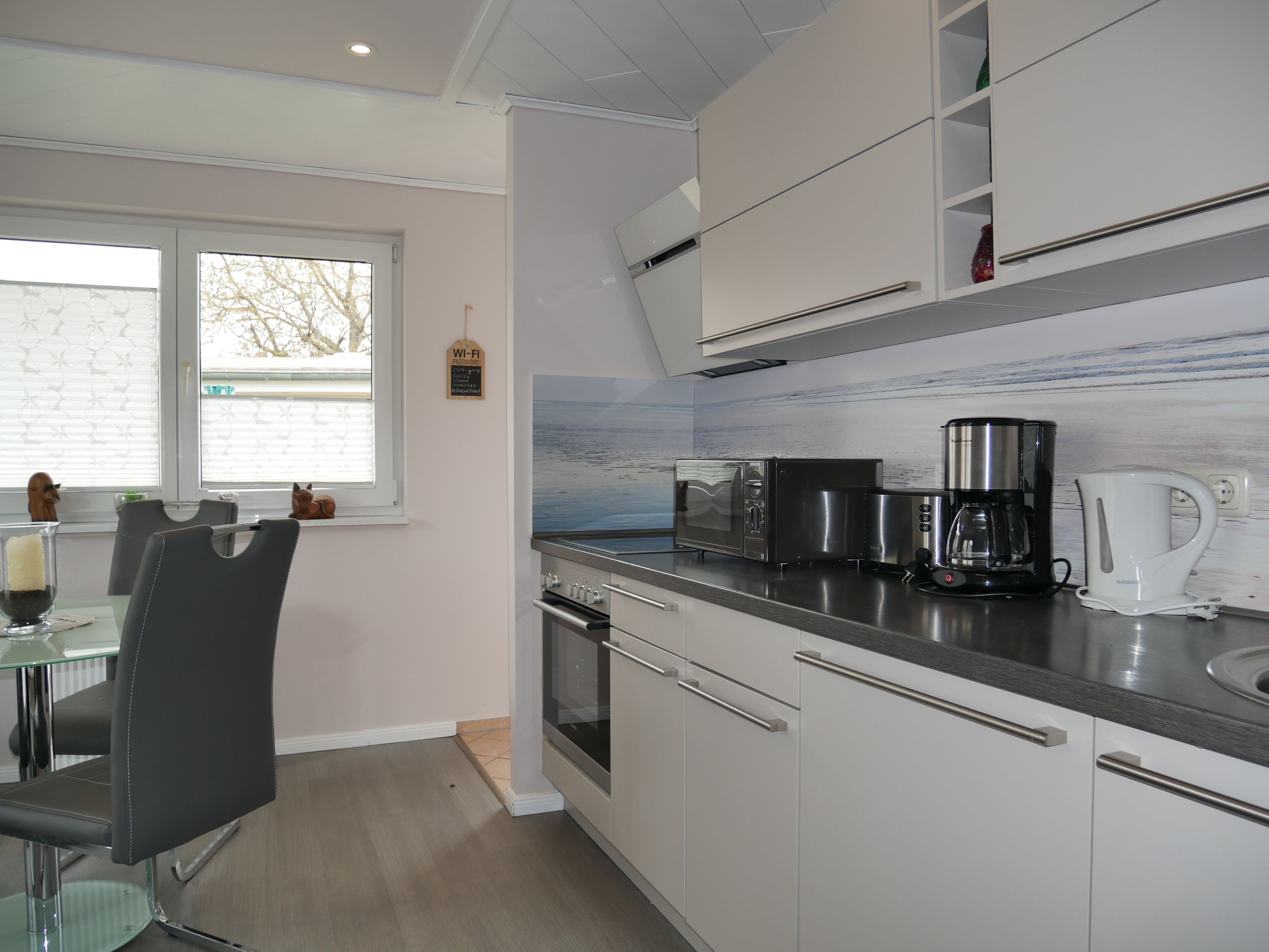 Die 2-Raumwohnung von 47m² im separaten Ferienhaus, auf dem Grundstück des Vermieters, verfügt über einen Wohnraum mit Küchenzeile, ein separates Schlafzimmer und ein Bad mit Dusche und WC. Die Wohnung ist geeignet für 2 Personen und eine Aufbettung im Wohnzimmer. Die Küchenzeile im Wohnraum ist komplett ausgestattet mit einem Herd, Kühlschrank, Wasserkocher, Toaster, Kaffeemaschine und einer Mikrowelle. Im Wohnraum befindet sich ein Essplatz für 3 Personen, eine Doppelbettcouch, ein Flachbild-SAT-TV und ein Radio. Das Schlafzimmer ist mit einem Doppelbett, einem großen Kleiderschrank und 2 Nachttischen ausgestattet. Eine gemütliche Sitzecke auf der Terrasse mit Gartenmöbeln und Grillmöglichkeit lädt zum Relaxen ein. Ein PKW-Stellplatz ist inklusive. Falls sie mit einem Kleinkind anreisen, bringen sie bitte ein Reisebett mit. Die Bettwäsche ist inklusive, Handtücher bitte selbst mitbringen.