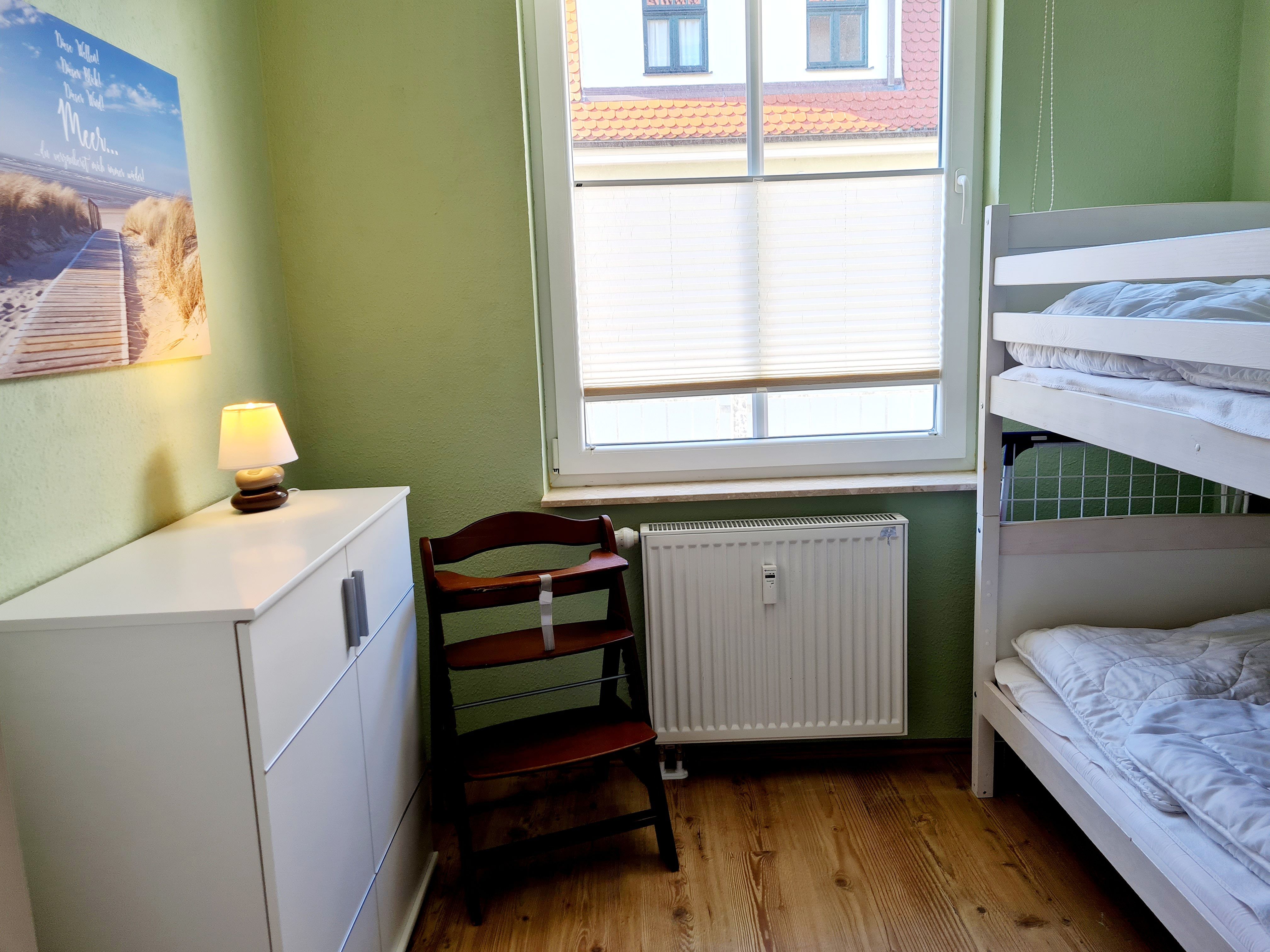 • Schlafzimmer II: Kinder-Doppelstockbett mit 80x180 cm Matratzen, Kommode