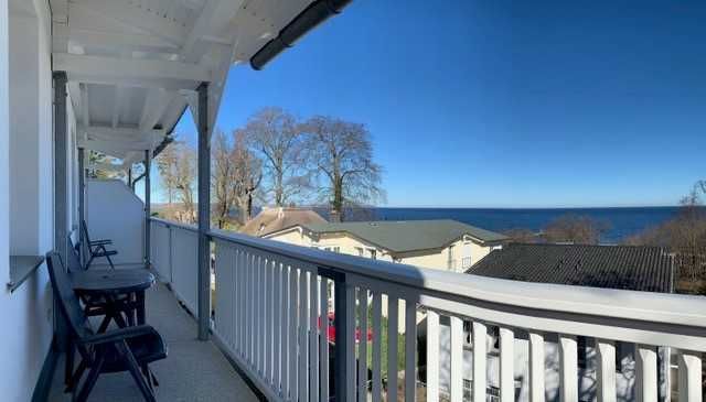 Der sehr große Balkon mit herrlichem Meerblick ist vom Wohnzimmer zu erreichen.