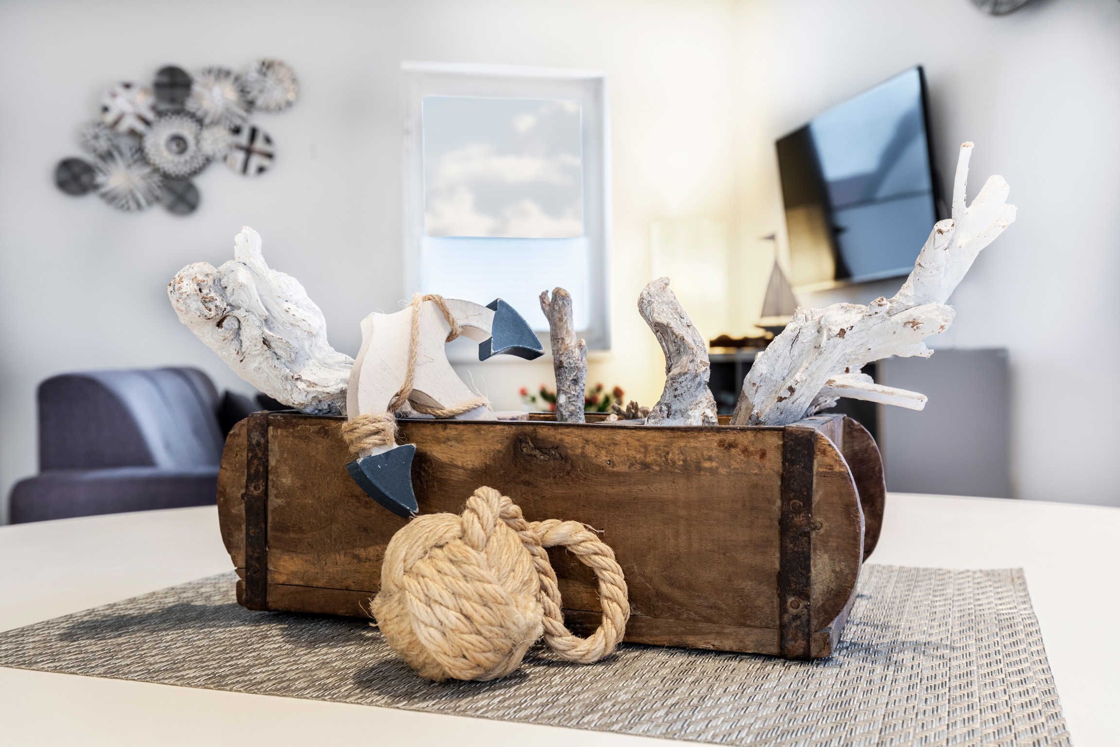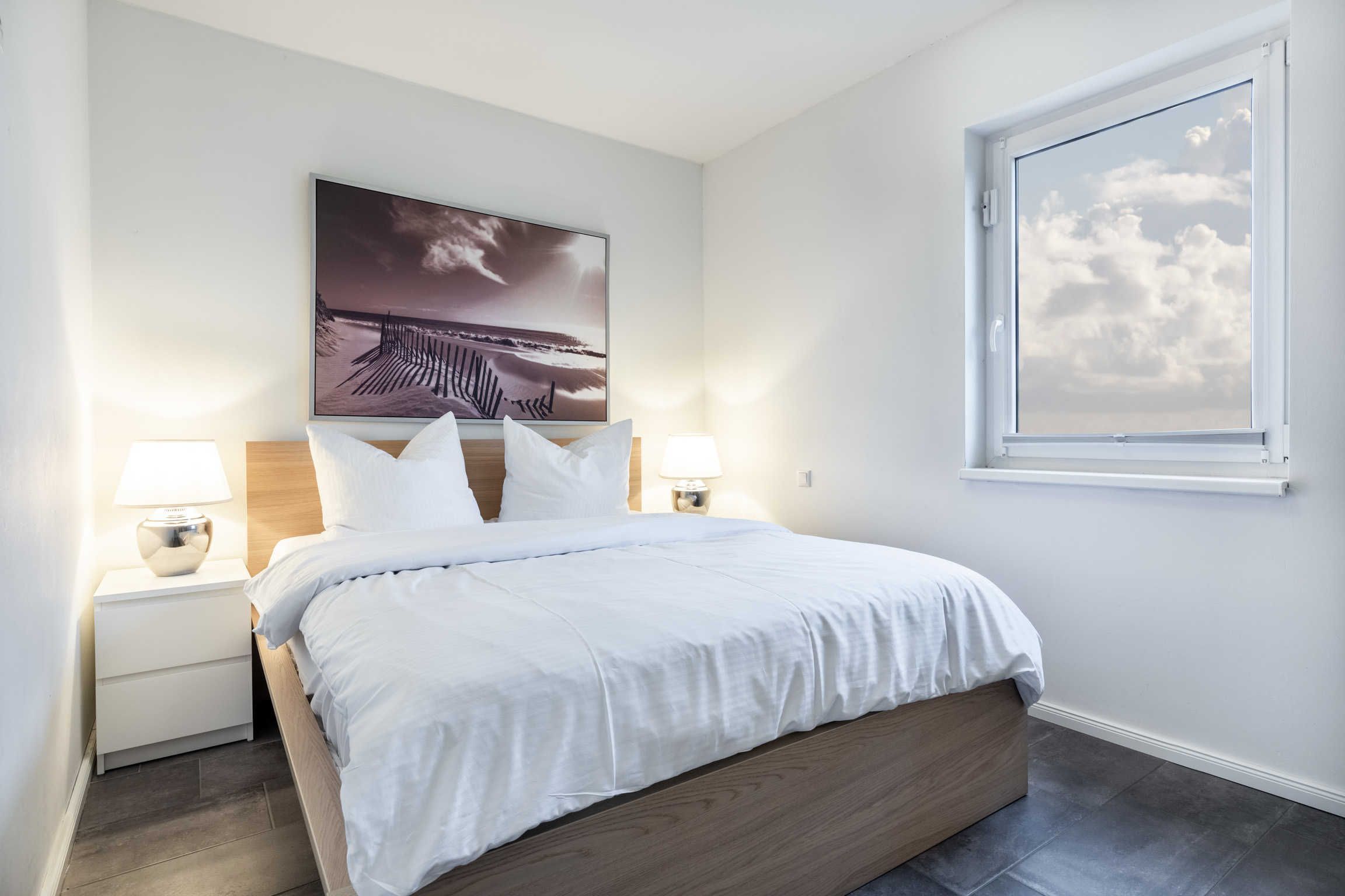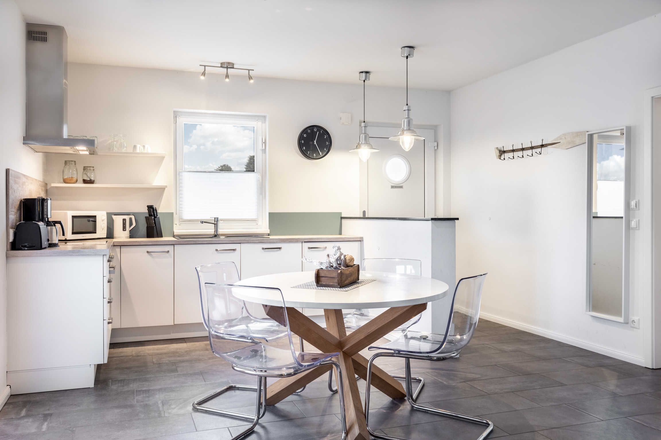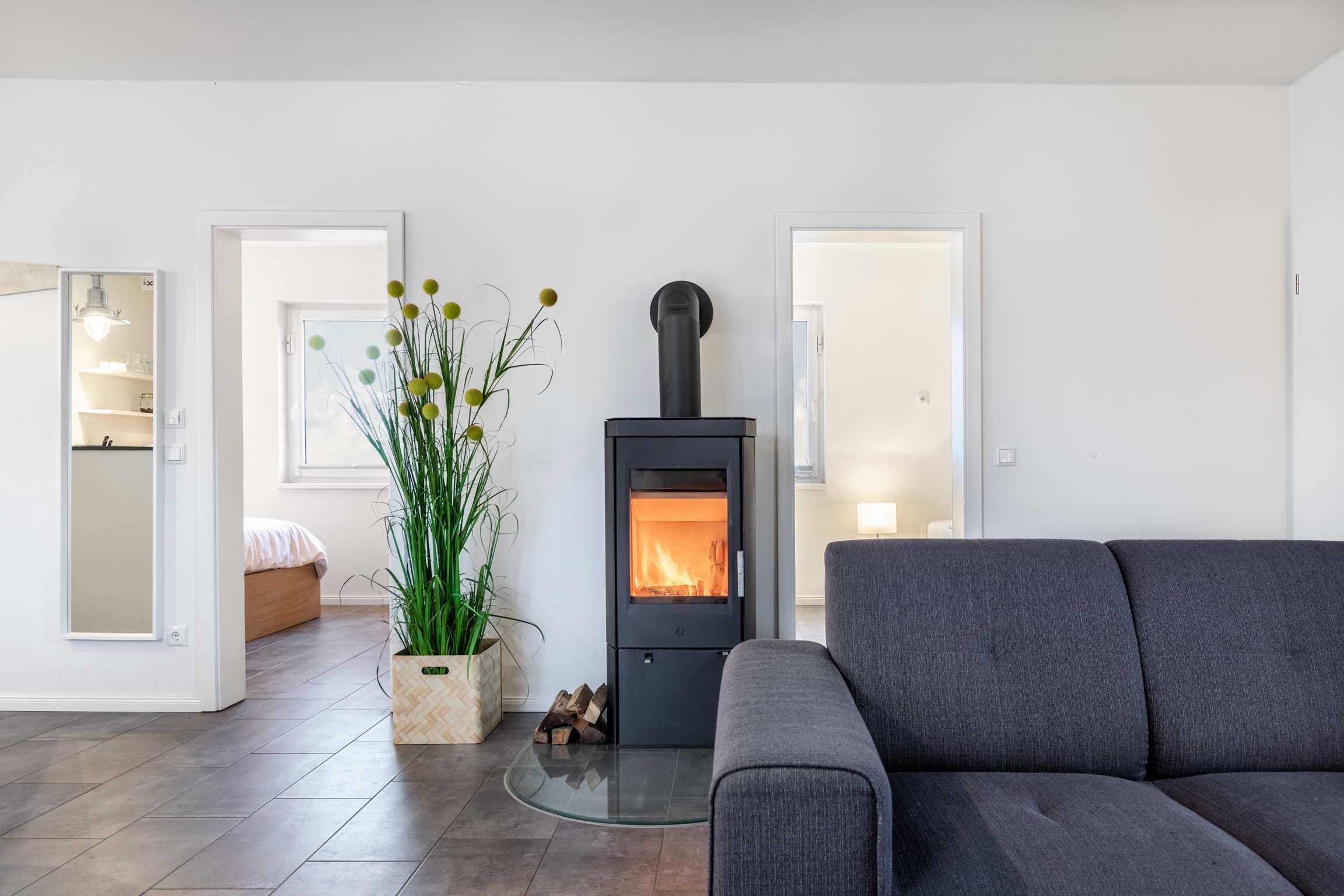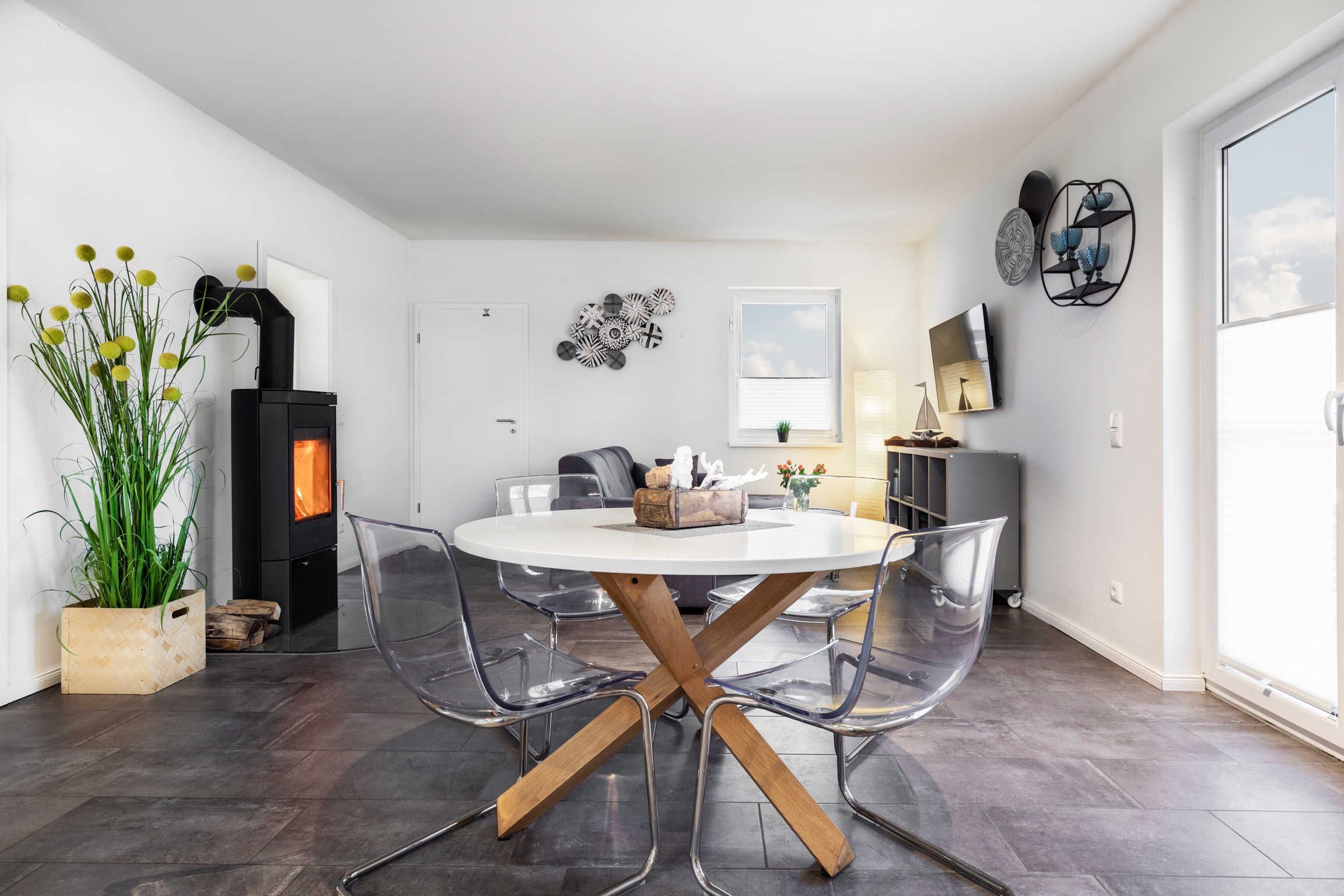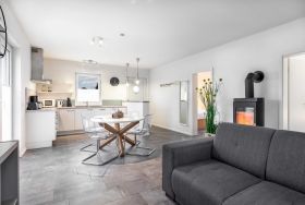 Die Lage und Ausstattung sind perfekt für Familien, Wassersportler, Aktivurlauber und Naturfreunde. Das Strand Ferienhaus verfügt über zwei separate Schlafzimmer. Eines mit Doppelbett und Kleiderregal und eines mit 2 Einzelbetten und Kleiderschrank. Der helle und weitläufigen Wohn- und Essbereich mit Kamin, Sofaecke, TV und Esstisch heißt die Gäste beim Betreten des Hauses willkommen. Die Küche ist mit Geschirrspüler, Herd, Backofen, Mikrowelle, Kaffeemaschine, Wasserkocher und Toaster komplett ausgestattet und bietet viel Platz für gemeinsames Kochen und Schlemmen im Urlaub. Vom Wohnzimmer aus gelangt man direkt auf die möblierte und große Sonnenterrasse mit Grill. Die Terrasse verfügt über einen Wind- und Sichtschutz. Das Bad ist mit Dusche und WC ausgestattet und wirkt mit der geschmackvollen Einrichtung sehr wohlig. Das Ferienhaus ist ebenerdig und eingeschränkt barrierefrei. Es gibt nur je eine kleine Schwelle zur Terrasse.