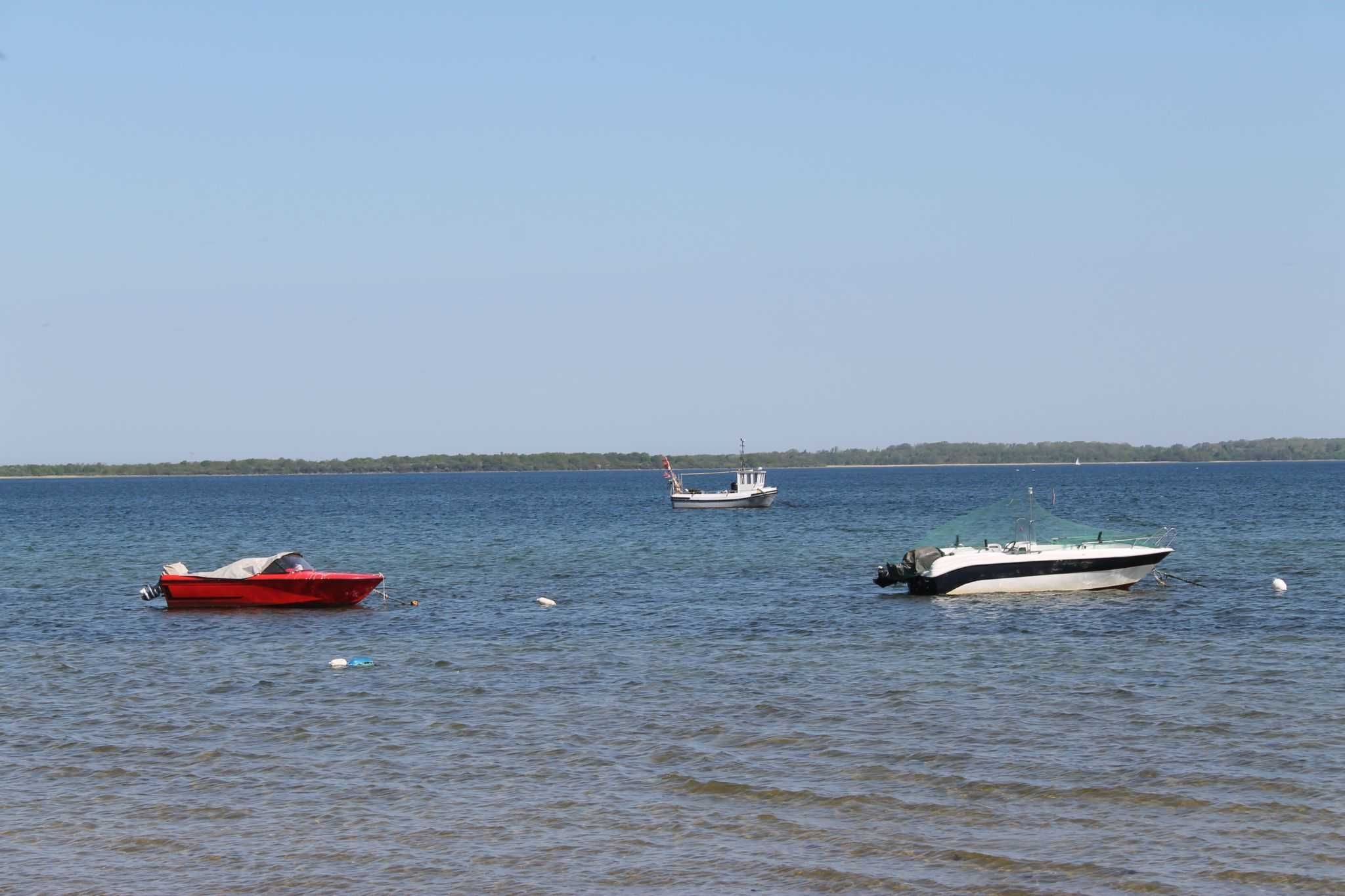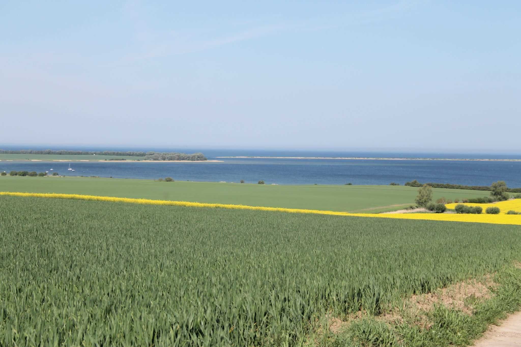 Nah am herrlichen Naturstrand - Perfekt für Familien, Urlaub unter Freunden und mit Hund, Surfer, Kiter, Aktivurlauber und Seelenbaumler. Direkte Lage am Ostseeküstenradweg. Blick vom Grundstück auf das Haff.