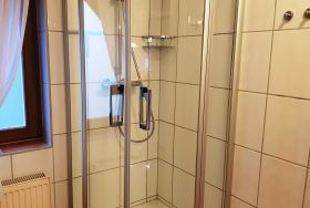 Das Tageslicht-Badezimmer ist mit einer Dusche und einem WC ausgestattet.