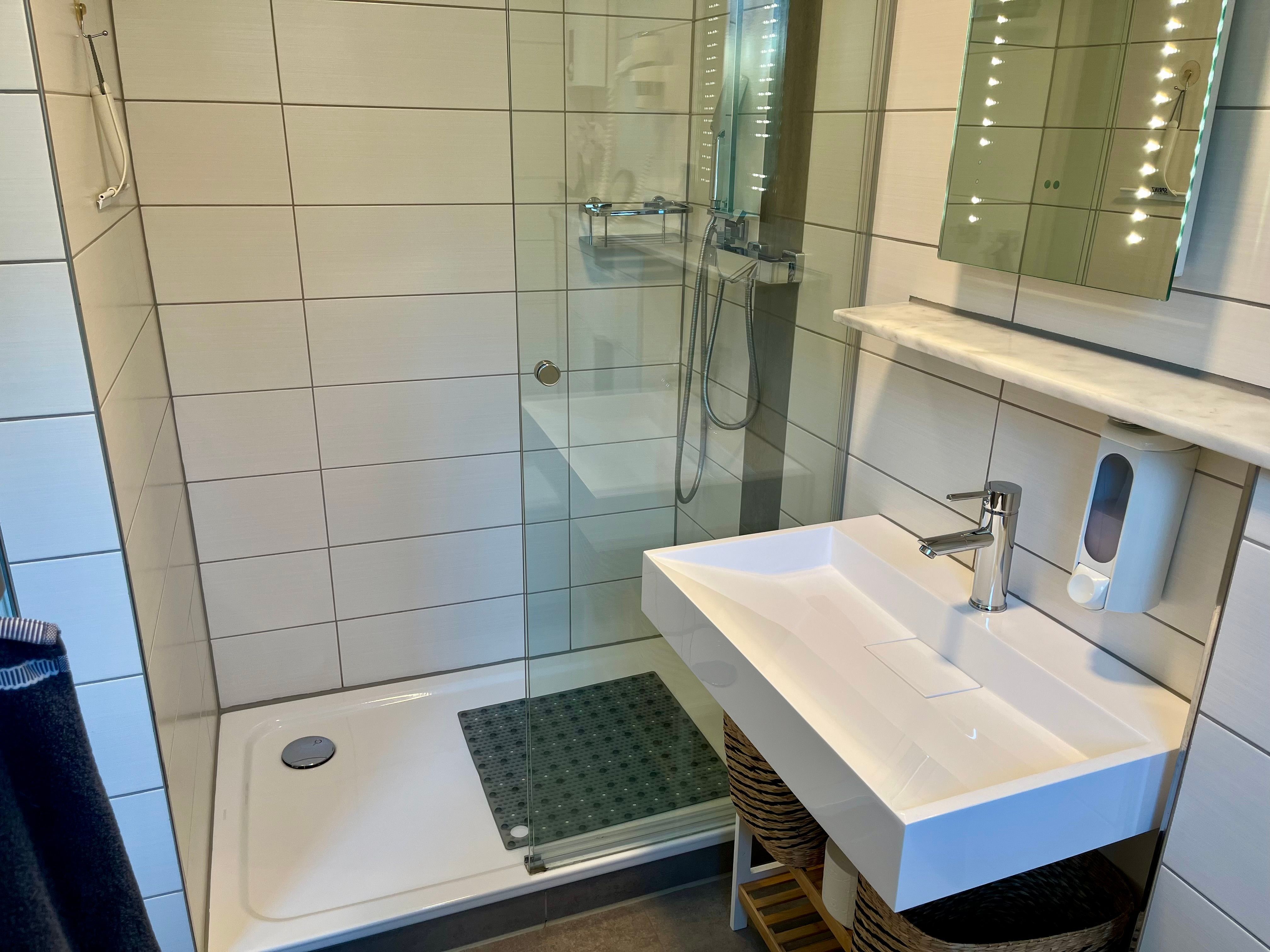 Unser Badezimmer ist mit WC und Dusche ausgestattet