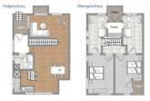 Behagliches, offenes Wohnzimmer mit bodentiefen Fenstern. Kommunikationsmittelpunkt ist der Essbereich mit Kaminofen und offener Küche. Ausstattung der Küche: Spülmaschine, Kaffee- und Nespressomaschine, Milchaufschäumer, Mikrowelle, Wasserkocher, Toaster sowie umfangreiche Küchenutensilien. Im EG befindet sich ein zusätzliches Bad mit Dusche und Waschmaschine, sowie Trockner. 2 Schlafzimmer mit Doppelbett, Flachbild-TV und jeweils eigenem En-Suite-Bad. Eine kleine Sauna, die von beiden Badezimmern aus zu betreten ist, bildet zusammen mit der Loggia ein weiteres Highlight.