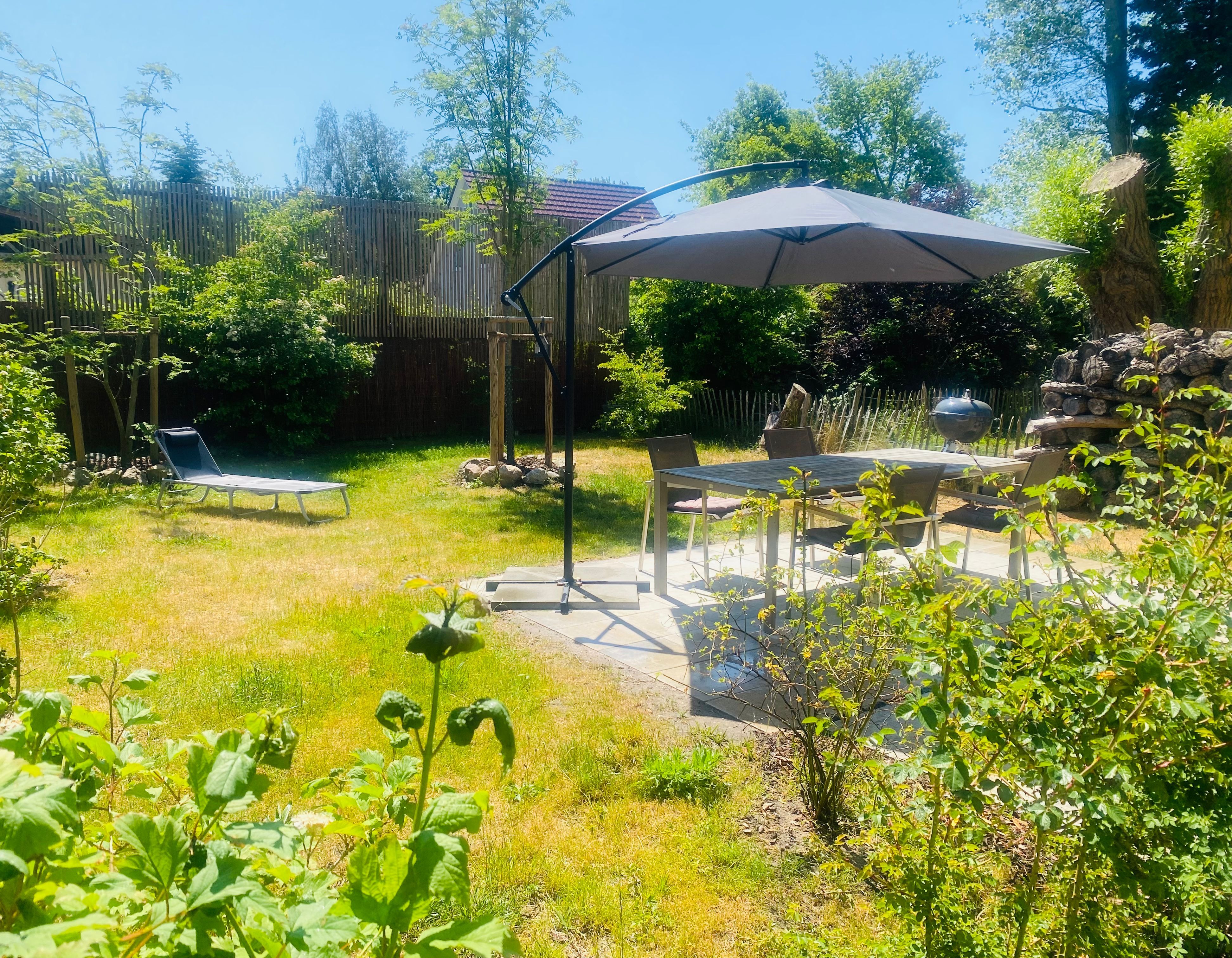 Das behagliche, offene Wohnzimmer mit bodentiefen Fenstern und direktem Zugang zum Garten, ein großer Smart-TV mit Blu-ray-Player, eine Bluetooth-Stereoanlage und der Essbereich mit Kaminofen und offener Küche sind Kommunikationsmittelpunkte des Hauses. Die Ausstattung der Küche bietet: eine Spülmaschine, Kaffeemaschine, Nespressomaschine, Milchaufschäumer, Mikrowelle, Wasserkocher, Toaster sowie umfangreiche Küchenutensilien. Im EG ist ein zusätzliches Bad mit Dusche, Waschmaschine und Trockner vorhanden. Zwei Schlafzimmer mit Doppelbett im Obergeschoss, jeweils mit Flachbild-TV und jeweils eigenem En-Suite-Bad und eine kleine Sauna, die von beiden Badezimmern aus zu betreten ist, bilden zusammen mit der Loggia ein weiteres Highlight.