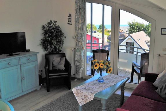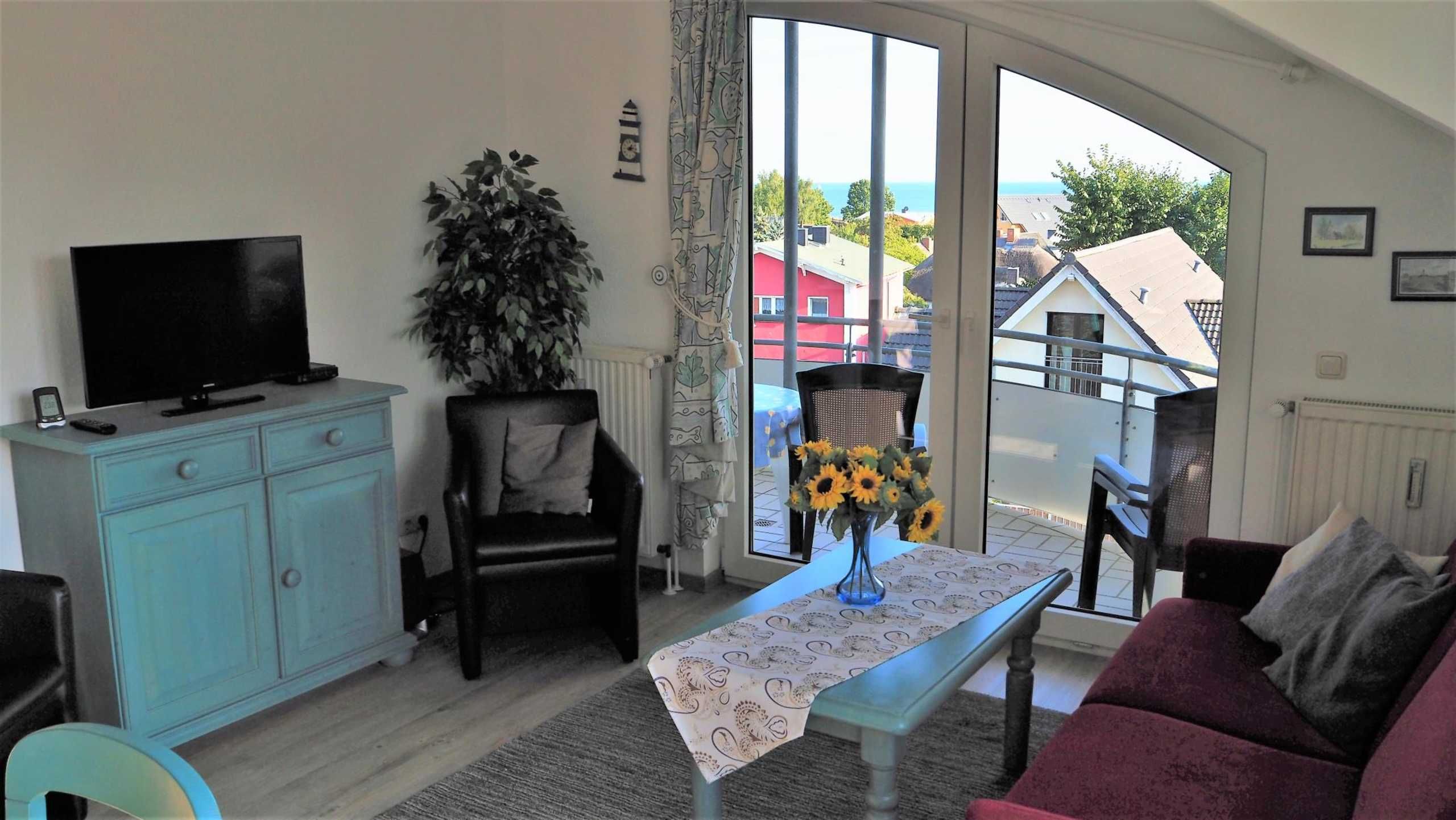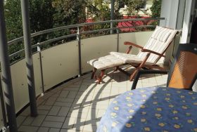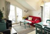 Sie wohnen in einem 2-Zimmer-Appartement für bis zu 4 Personen in der Villa Eintracht im Dachgeschoss, ca. 48m², ein Schlafzimmer (Möglichkeit zur Abdunklung vorhanden) mit Doppelbett, Wohn-/Schlafraum mit Doppelbettcouch, separater Essplatz, voll ausgestattete separate Küche mit Geschirrspüler und Mikrowelle, Dusche/WC, Balkon, SAT-TV.