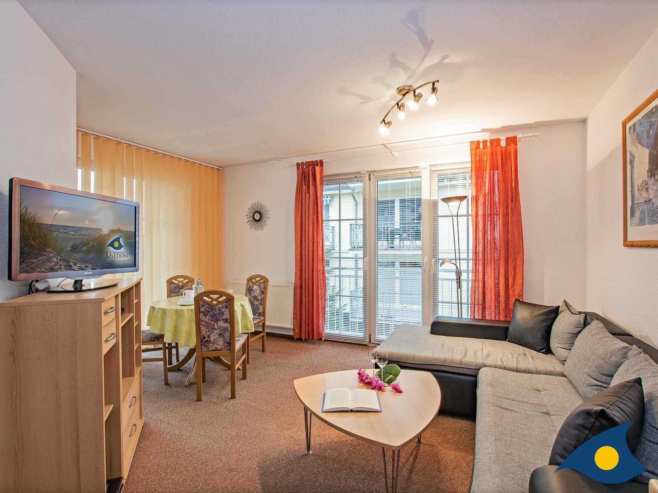 Ob zu Zweit oder in Familie, das in der ersten Etage der Villa gelegene Zwei-Zimmer-Appartment garantiert Ihnen einen entspannten Urlaub auf der sonnenreichsten Insel Deutschlands. Der helle Wohnraum verbindet Gemütlichkeit mit der im Urlaub gewünschten Zweckmäßigkeit. Sowohl der Essbereich wie auch die bequeme Couchecke bieten 4 Personen Platz zum Essen, Spielen oder Relaxen. Mit einem HD-Flachbild-Fernseher, DVD-Player und einer kleinen Musikanlage steht Ihnen das nötige Equipment zur Verfügung.