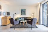 Der Wohnbereich ist ausgestattet mit Flach- Smart TV (Netflix und Magenta TV), Bluetooth Lautsprecher, Esstisch und gemütlicher Sitzecke mit Ledercouch und Sesseln. Für Kurzweile im Urlaub sorgen außerdem eine bunte Spielsammlung und eine feine Bücherauswahl.