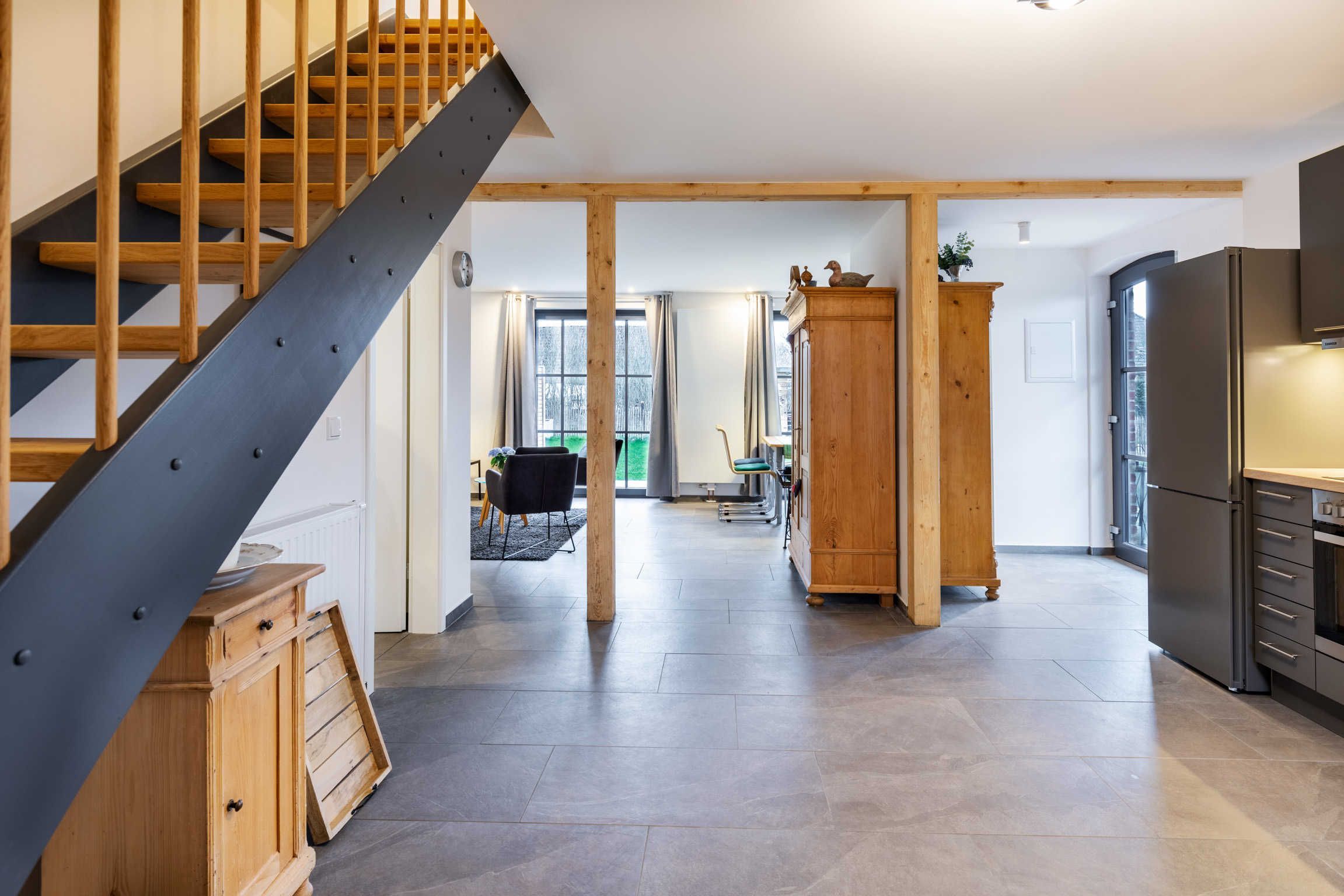 Im Erdgeschoss: Hier befindet sich die separate und komplett ausgestatte Küche mit allem, was man für das entspannte Kochen und Genießen im Ferienhaus benötigt. Zur hochwertigen Einrichtung zählen ein Esstisch, Geschirrspüler, 4-Platten-Ceran Kochfeld, Backofen, Kühl- Gefrierkombination, Kaffeemaschine, Nespressomaschine, Wasserkocher, Toaster, Rührgerät, ausreichend Geschirr und Gläser sowie zahlreiche Küchenhelfer.