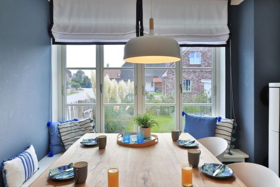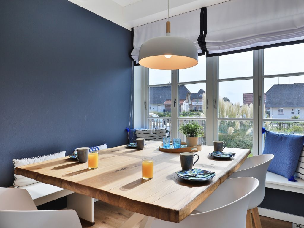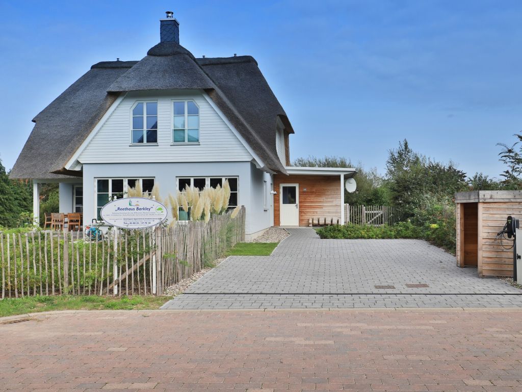 Das modern gestaltete Ferien Reetdachhaus ist mit 160qm Wohnfläche für insgesamt bis zu 8 Personen eingerichtet. Sechs Erwachsene Gäste und zwei Kinder können in diesem außergewöhnlich schicken Domizil ihre Ferien verbringen. Das Haus liegt nur 800m zum wunderschönen Strand von Groß Schwansee. Die verkehrsberuhigte Lage innerhalb eines Ferienwohngebietes und das eingezäunte Grundstück bieten beste Bedingungen für einen erholsamen Familienurlaub oder auch für den Urlaub mit Freunden. Ihr Hund ist ein sehr willkommener Gast -gegen Gebühr-. Direkt vom Grundstück des Ferienhauses gelangen Sie auf einen benachbarten Feldweg. Der Wohnbereich im Erdgeschoss, mit dem einladenden Wohn-/Essraum, ist durch eine insgesamt sehr großzügige Gestaltung auch für Rollstuhlfahrer nutzbar. Die Innentüren dieses schicken Hauses sind von der Breite her mit dem Rollstuhl durchfahrbar. Im Wohnbereich lädt sehr komfortables Mobiliar, wie auch ein wohliger Holzkaminofen zum gemütlichen Beisammensein ein. Fernseher und kostenfreies WLAN sind vorhanden. Die technisch hervorragend ausgestattete Wohnküchenzeile überzeugt mit Induktionsherd, Geschirrspüler u.v.m. Sowohl am großen Esstisch, oder im Sommer auch auf der ebenerdigen Terrasse, können Sie bequem Ihre Mahlzeiten einnehmen. Zudem ist hervorzuheben, dass Haus Barkley über vier separate Schlafzimmer verfügt. Zwei der Schlafzimmer bieten jeweils ein Doppelbett und TV. Ein drittes Schlafzimmer ist mit einem Etagenbett ausgestattet und das vierte der Zimmer mit einem ausziehbaren Einzelbett, so dass auch in diesem Schlafbereich bei Bedarf zwei Personen nächtigen können. Im Obergeschoss des Hauses ist ein weiteres Tageslicht Badezimmer vorhanden, welches Sie mit einer Badewanne und einer ebenerdigen Dusche verwöhnt. Für besondere Wohlfühlmomente empfiehlt sich die Nutzung der hauseigenen Sauna -gegen Gebühr. Die exklusive Gesamtausstattung dieses Reetdachhauses verspricht allen Mitreisenden einen sehr erholsamen Aufenthalt. Bei Anreise sind die Betten als inklusive Leistung bereits für Sie bezogen. Für Kinder steht ein Bollerwagen bereit. Waschmaschine sowie Wäschetrockner können gerne genutzt werden. Das Erdgeschoss dieses Feriendomizils ist mit dem Rollstuhl nutzbar. Es handelt sich um ein Nichtraucherhaus. Haustiere sind willkommen. Das Grundstück bietet drei PKW-Stellplätze und eine PKW E-Ladesäule. Bei Anreise ist eine Kaution in Höhe von 500 Euro in bar zu hinterlegen.