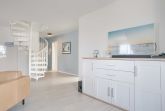 Auf der größeren unteren Ebene befindet sich der offene, moderne Wohnbereich, sowie auch der Essplatz für bis zu 6 Personen. Ebenfalls in dieses offene Konzept ist die voll ausgestattete Küchenzeile integriert.