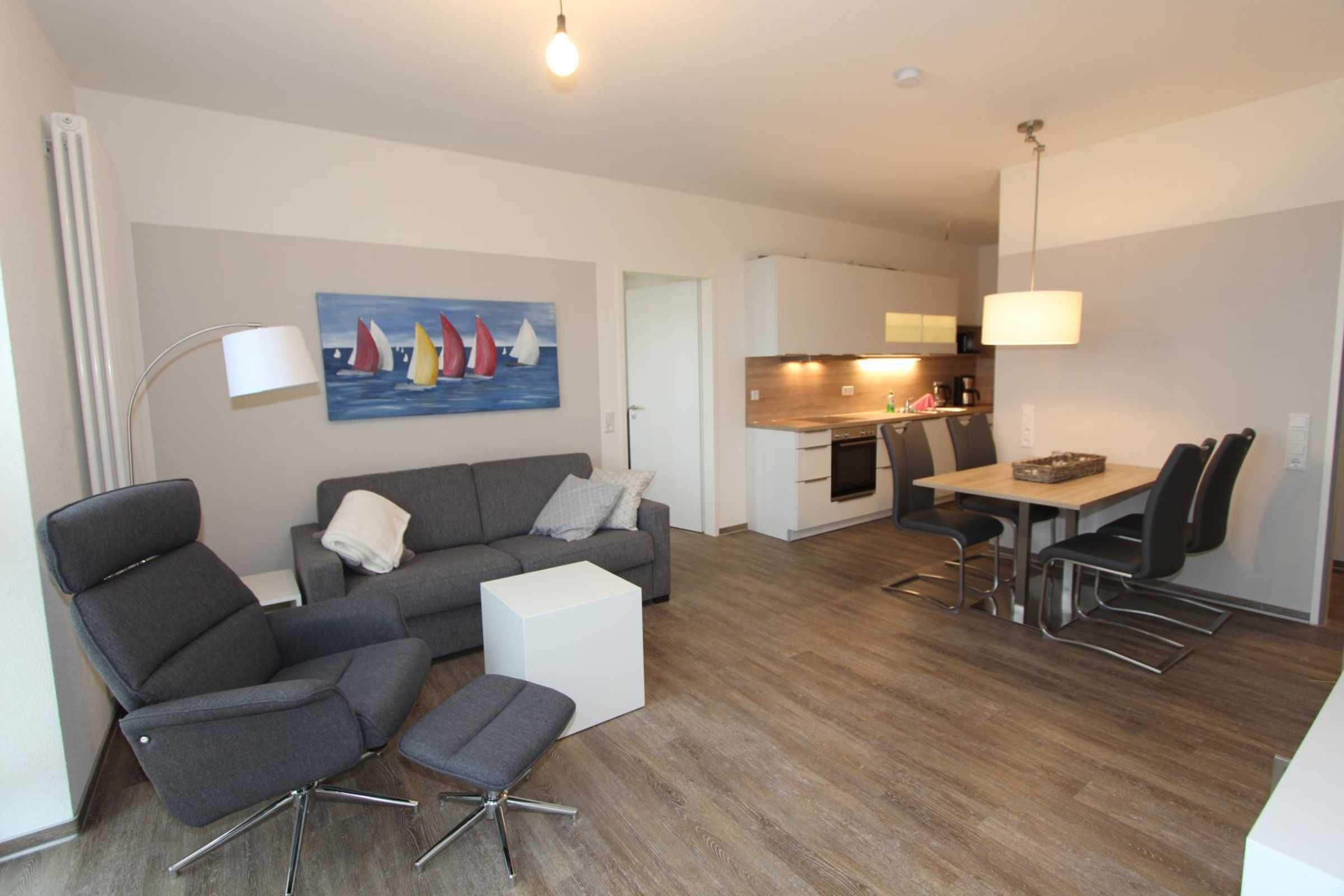 Die sorgfältig aufeinander abgestimmten Farben der Bodenbeläge, Möbel und Wohntextilien bilden eine harmonische Einheit. Für Unterhaltung sorgt ein Sat-TV mit Sky-Programmen. Einige Appartements besitzen eine private Sauna. Zu jeder Wohnung gehört ein Stellplatz entweder in der Tiefgarage oder im Außenbereich. Über einen Lift sind auch die Wohnungen in den oberen Stockwerken bequem zu erreichen. Eine Rezeption vor Ort ermöglicht ein stressfreies Ankommen. Gerne kümmert sich das Team um alle Fragen und Anliegen der Gäste und gibt Tipps zur abwechslungsreichen Urlaubsgestaltung in der Region. Für Aktivurlauber ist ein geräumiger Fahrradkeller vorhanden. Insbesondere Familien und Feriengäste, die einen längeren Aufenthalt an der Schleimündung genießen, schätzen die Möglichkeit, eine Münz-Waschmaschine sowie einen Münz-Trockner nutzen zu können.