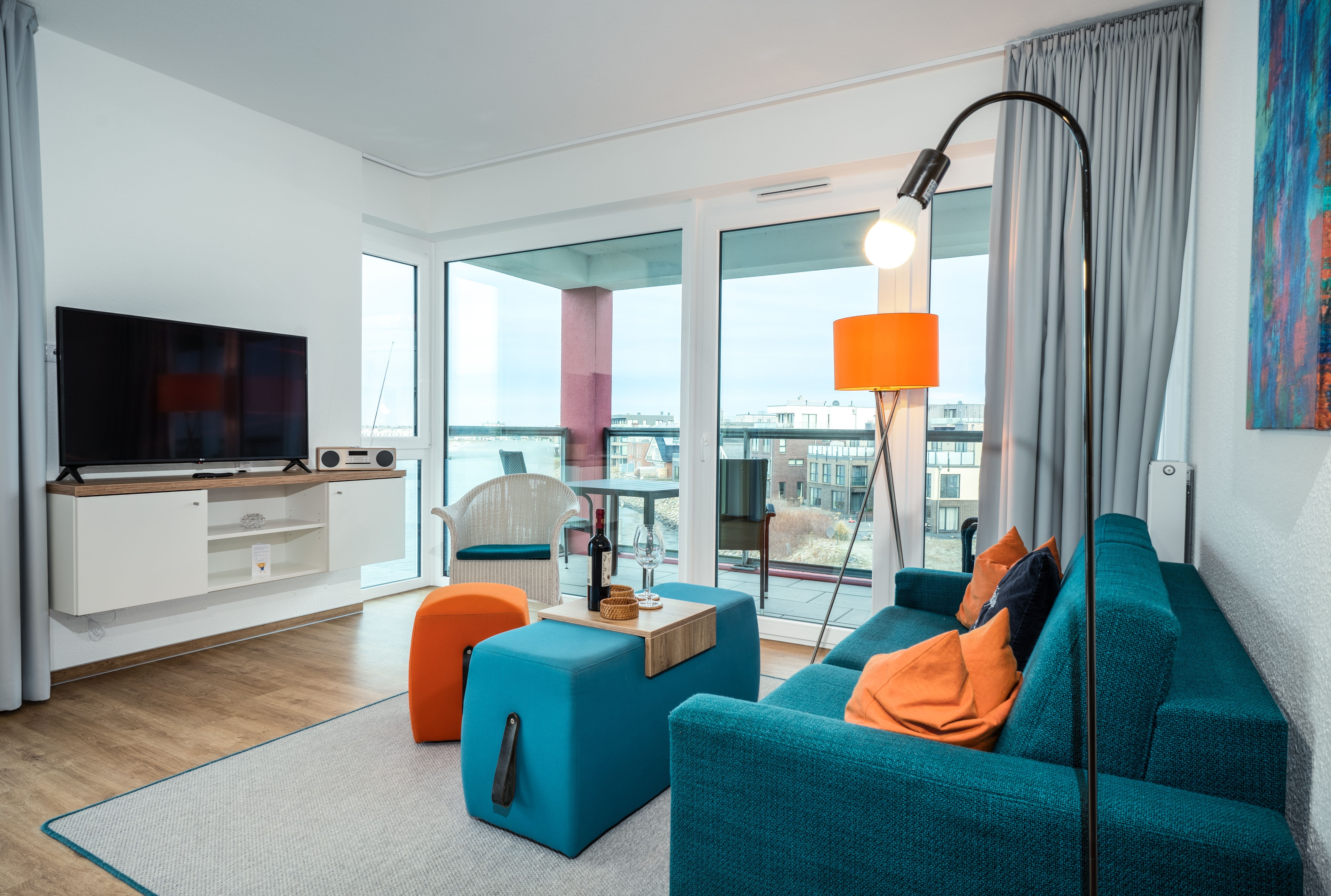 Die Residenz Bollwark beherbergt 26 hervorragend ausgestattete Wohneinheiten. In den Zwei- und Dreizimmerappartements fühlen sich erholungsuchende Paare ebenso wohl wie Familien mit Kindern, die erlebnisreiche Tage am Meer verbringen möchten. Alle Wohnungen verfügen über einen privaten Balkon, eine Terrasse oder Loggia: Dort lassen die Feriengäste den Tag nah dran am Geschehen auf dem Wasser entspannt mit einer Tasse Kaffee beginnen oder abends bei einem Glas Rotwein Revue passieren. Für das Interieur der hellen und großzügig geschnittenen Wohneinheiten waren erfahrene Inneneinrichtungsspezialisten verantwortlich.