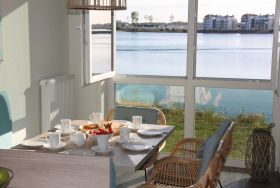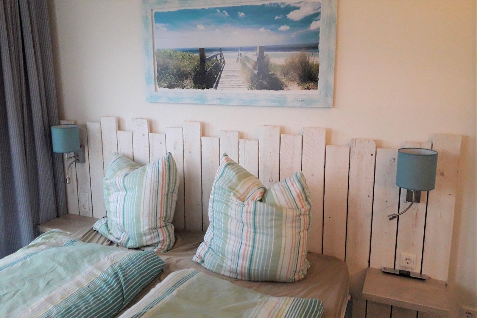 Das schöne 3-Zimmer-Appartement für bis zu 6 Personen (ca. 60 m²), wurde in Anlehnung an den Beach House Style eingerichtet und bietet aus allen Fenstern einen beeindrucken Blick über das Meer und den Hafen von Olpenitz. Die Wohnung ist stufenlos erreichbar und eignet sich daher auch sehr gut für Senioren und Menschen mit leichten körperlichen Einschränkungen. Das Appartement ist wie folgt aufgeteilt: ein Schlafzimmer mit Doppelbett; ein Schlafzimmer mit Doppelbett, welches manzu getrennten Betten auseinanderschieben kann; Wohn-/Schlafraum mit Doppelbettcouch; separater Essplatz; voll ausgestatteter Küchenbereich mit Geschirrspüler; Bad mit Dusche/WC; Terrasse mit direktem Seeblick; SAT-TV und Sky.