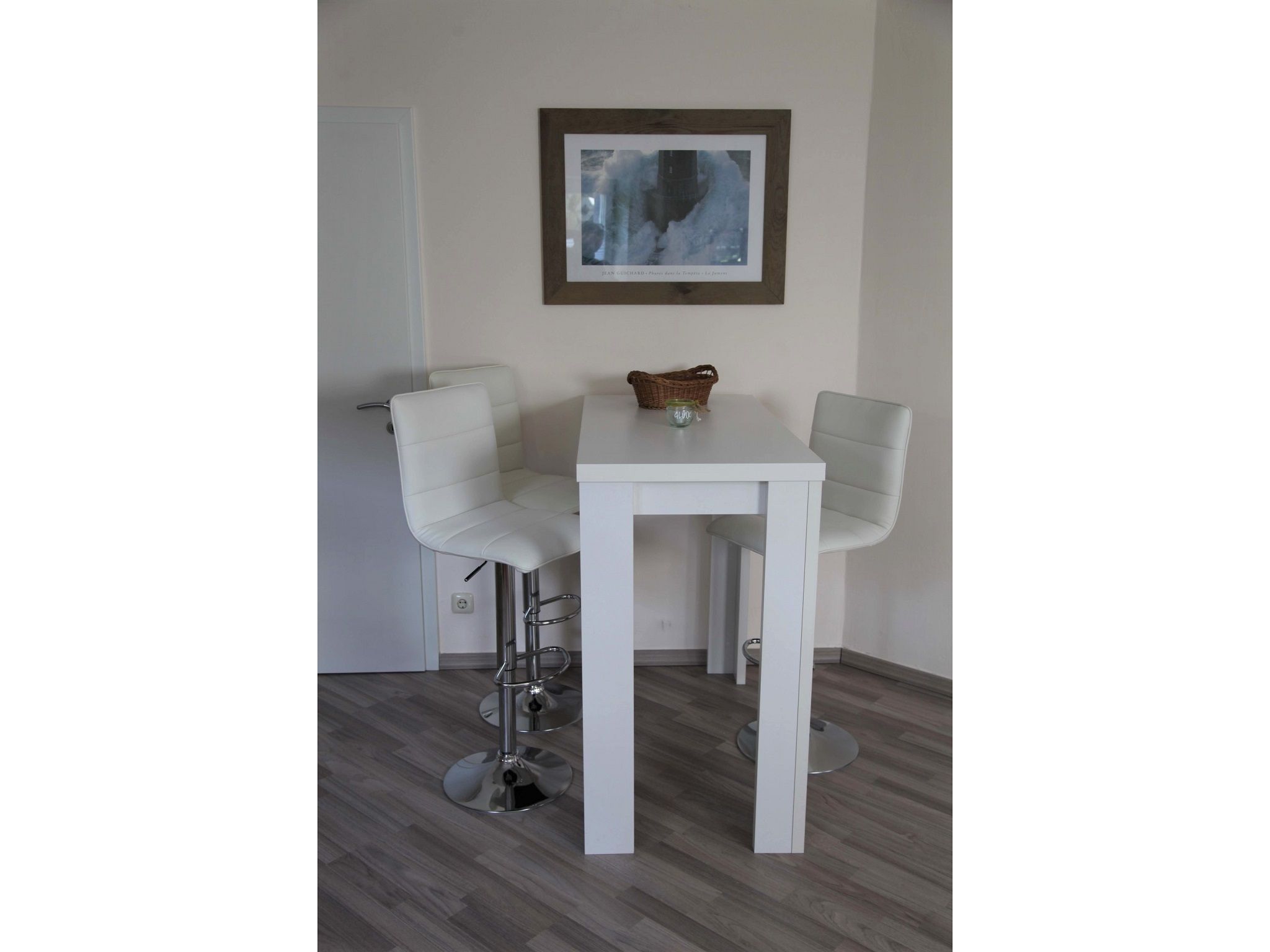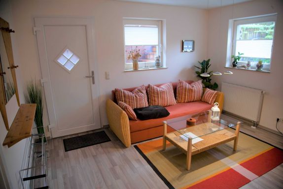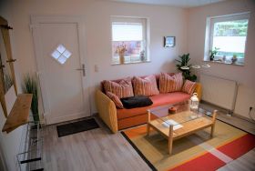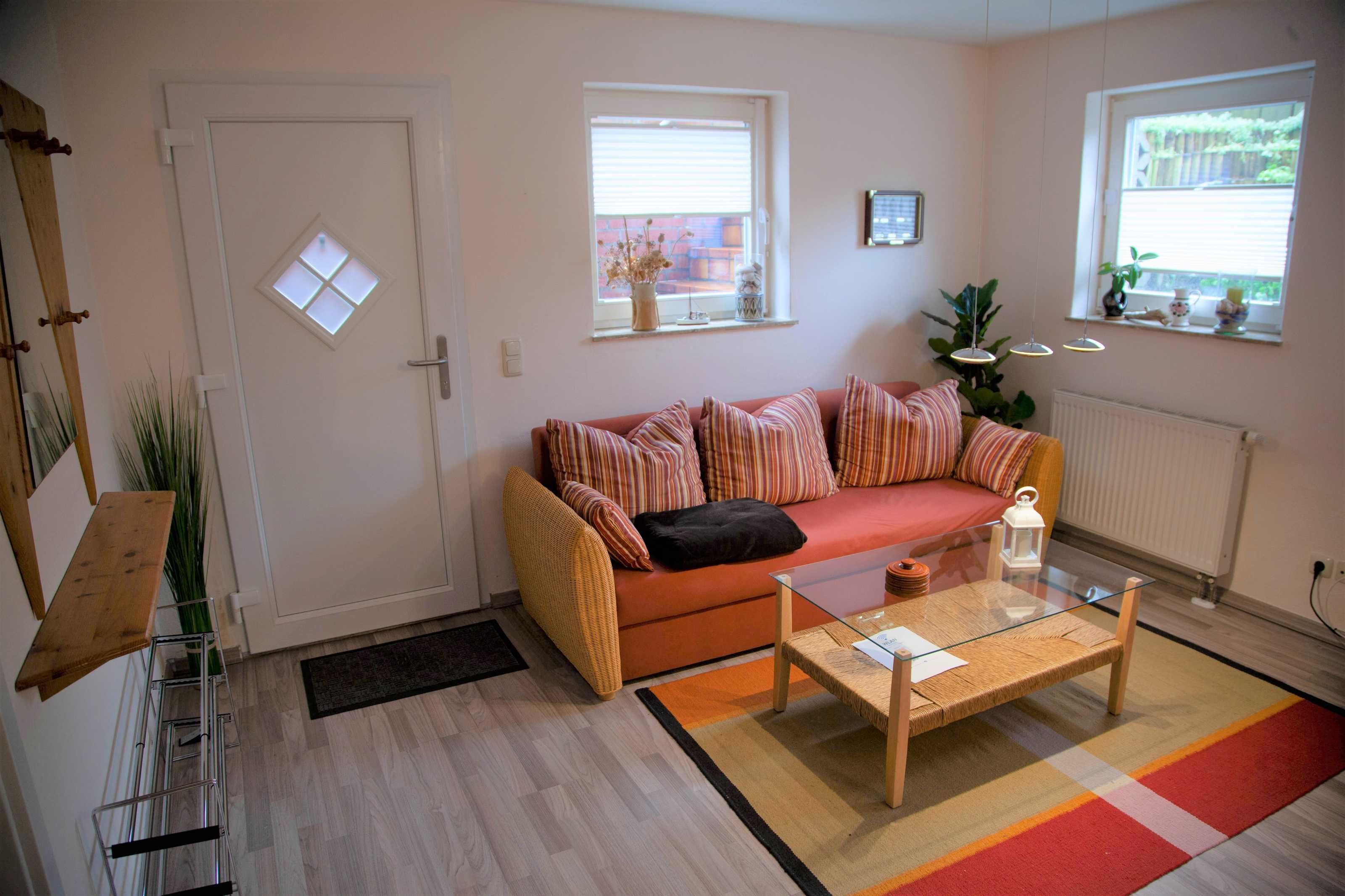 Die ruhige, moderne 2-Raum-Nichtraucherferienwohnung ist für bis zu 3 Personen geeignet. Sie verfügt über ein Wohnzimmer mit gemütlicher Couch (Aufbettungsmöglichkeit 3. Person), LED-Flat-TV, CD/DVD_Player, Radio und einem Hochtisch mit 3 Barstühlen als Essgelegenheit. Die offene Küche ist mit einem zweiflammigen Ceranfeld, Kühlschrank mit Tiefkühlfach, Kaffeemaschine, Wasserkocher, Mikrowelle und Toaster ausgestattet. Das separate Schlafzimmer erwartet Sie mit einem Doppelbett und einem großen Kleiderschrank für Ihre Urlaubsgarderobe. Das moderne Badezimmer ist mit Dusche/WC, Waschtisch und Haartrockner ausgestattet. Auf dem Grundstück steht Ihnen eine sonnige Terrasse mit eigenem Strandkorb, Gasgrill und Sonnenschirm zur Verfügung, um gemütliche Abende zu verbringen. WLAN ist kostenfrei vorhanden.