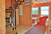Im Obergeschoss stehen zwei Schlafzimmer zur Verfügung. Das erste Schlafzimmer ist mit Doppelbett (180x200), Babybett, genügend Stauraum und einem Schreibtisch ausgestattet. Das zweite Schlafzimmer verfügt über zwei Einzelbetten (90x200) und einen Kleiderschrank.