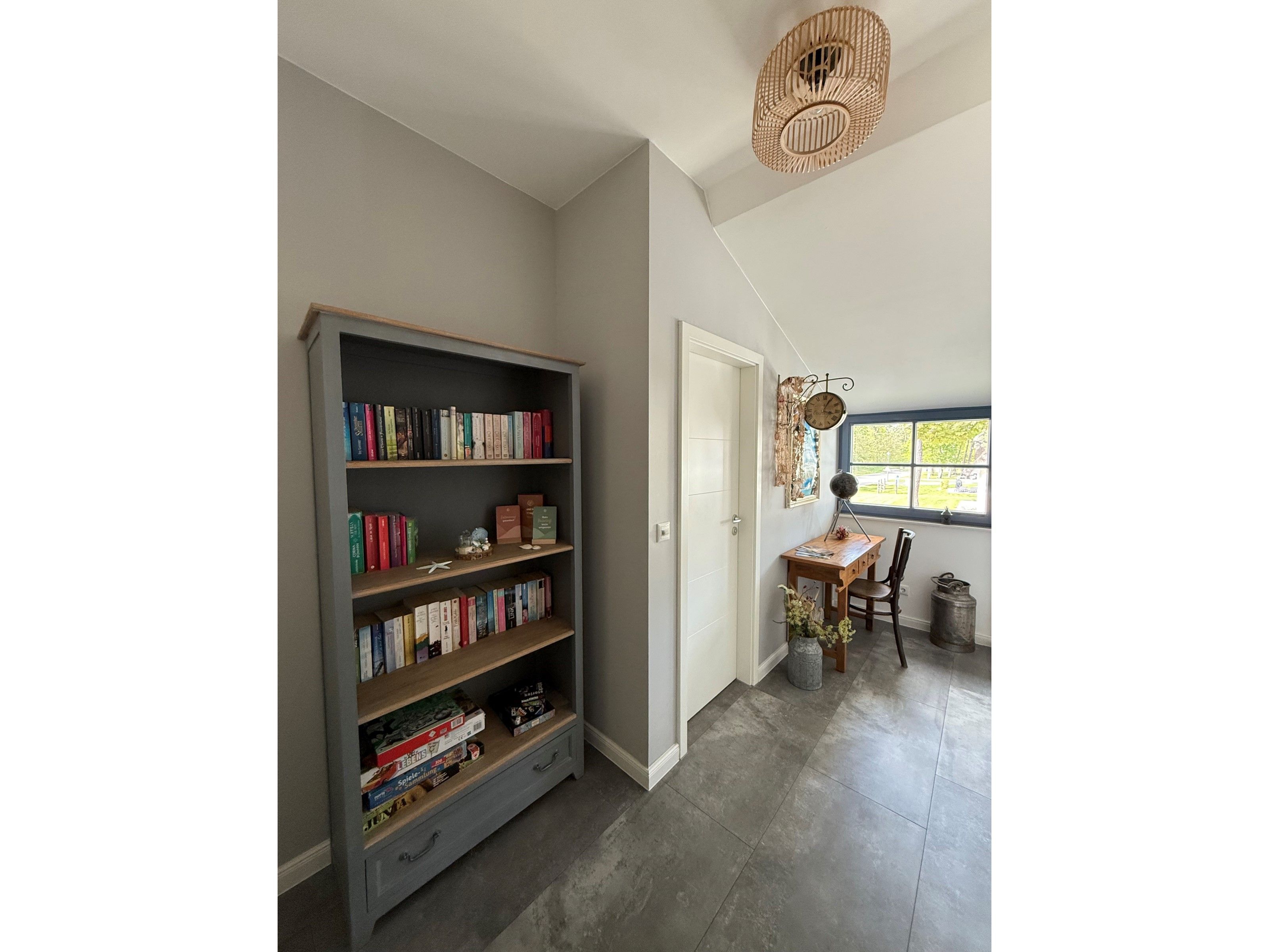 Eine ruhige Schreibtischecke zum Lernen oder Arbeiten befindet sich am Ende der Treppe im Obergeschoss.