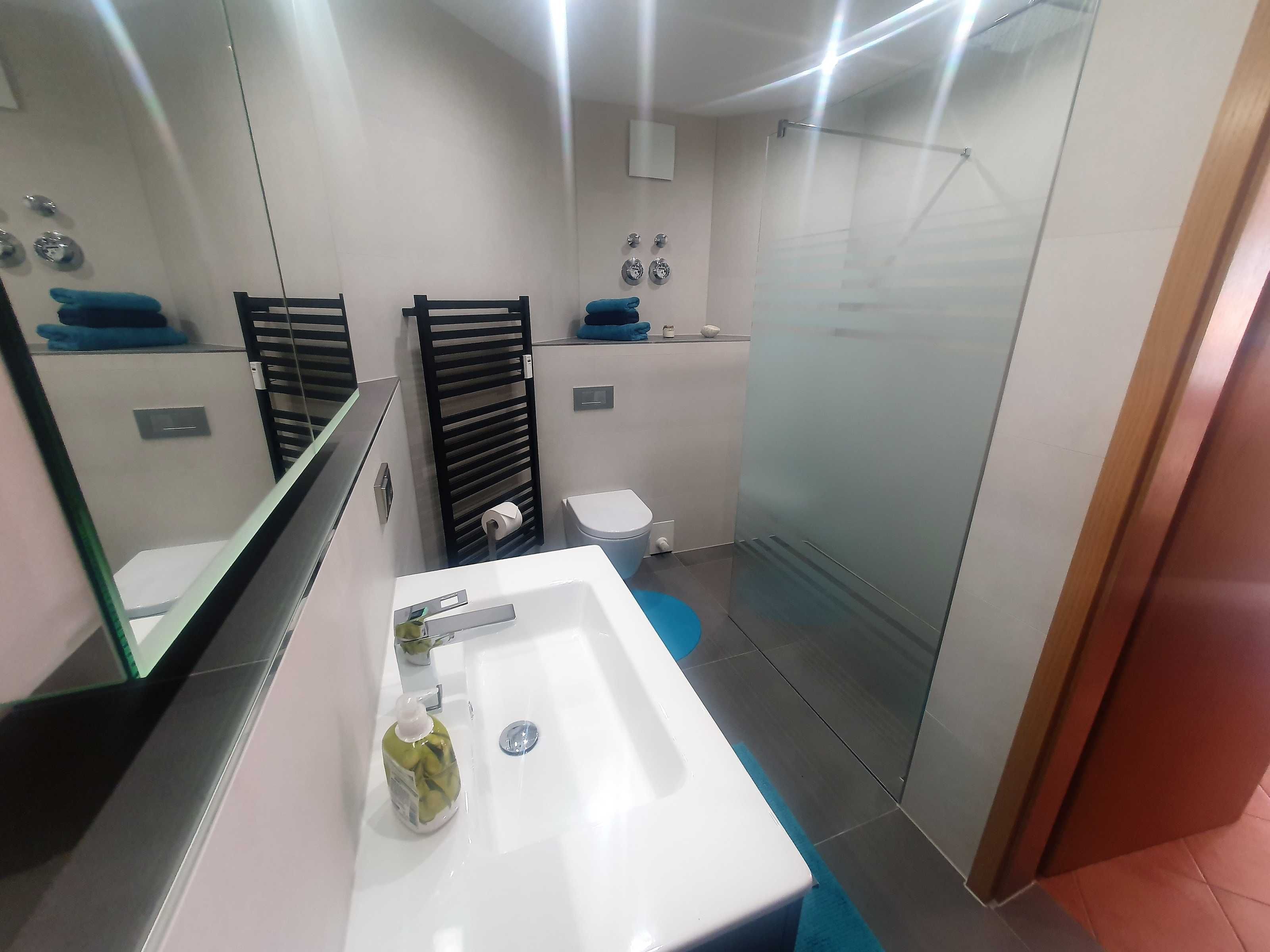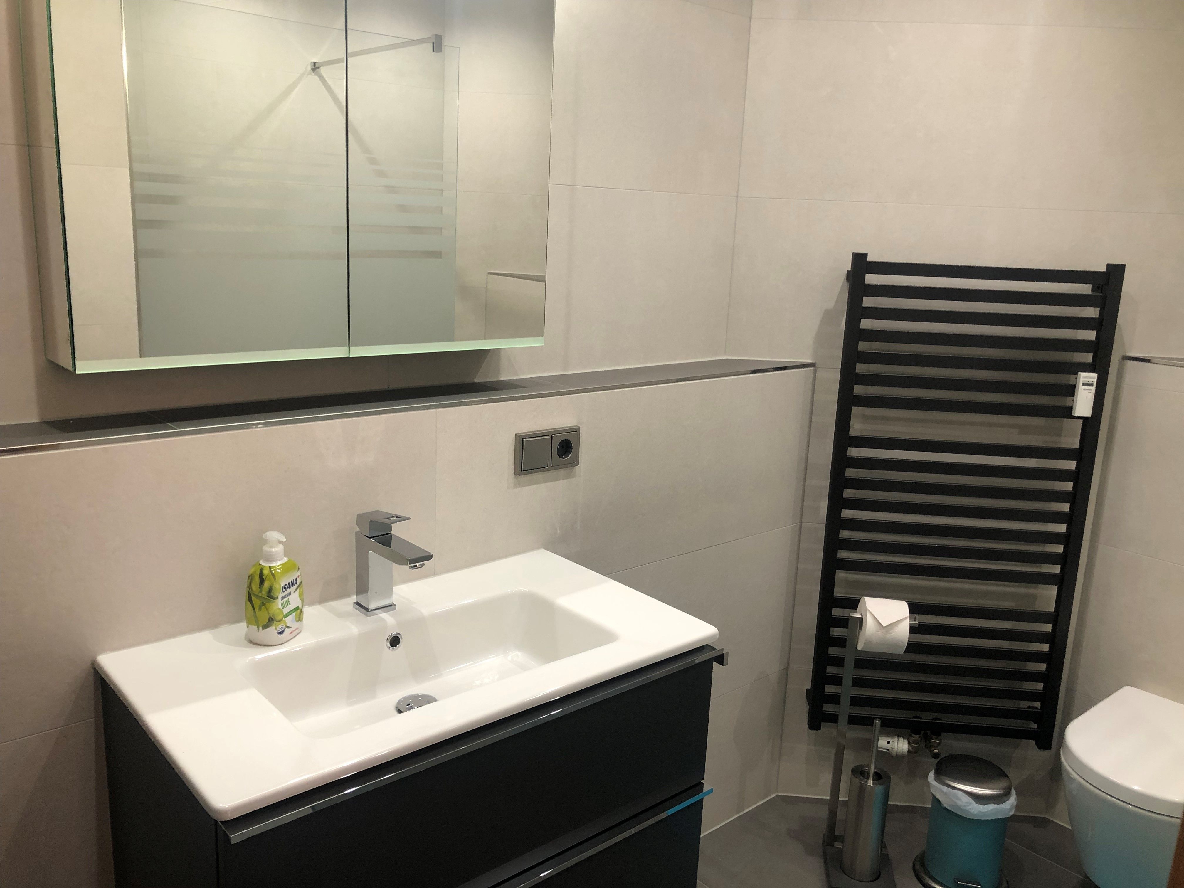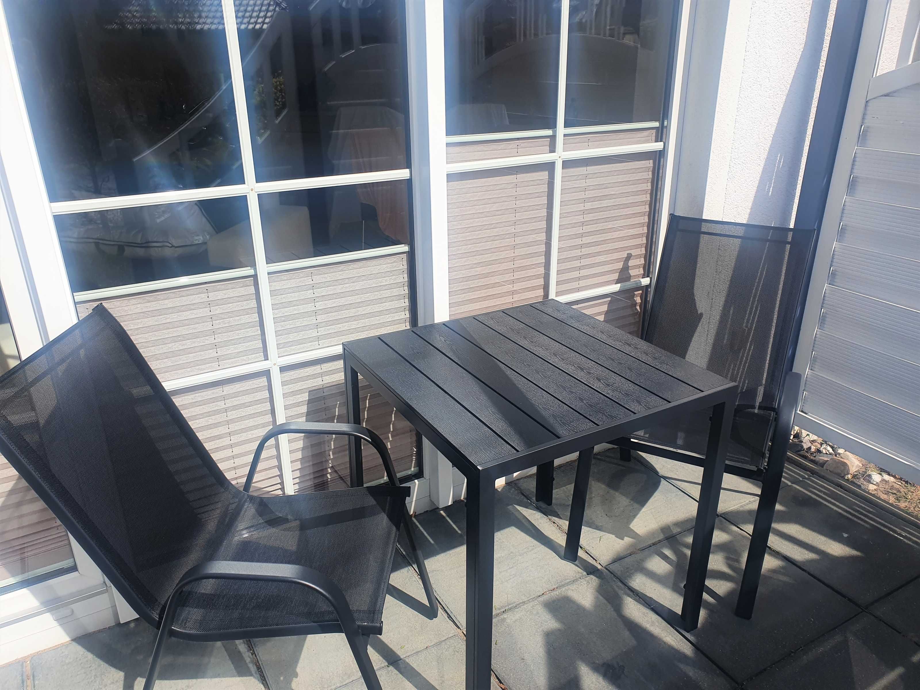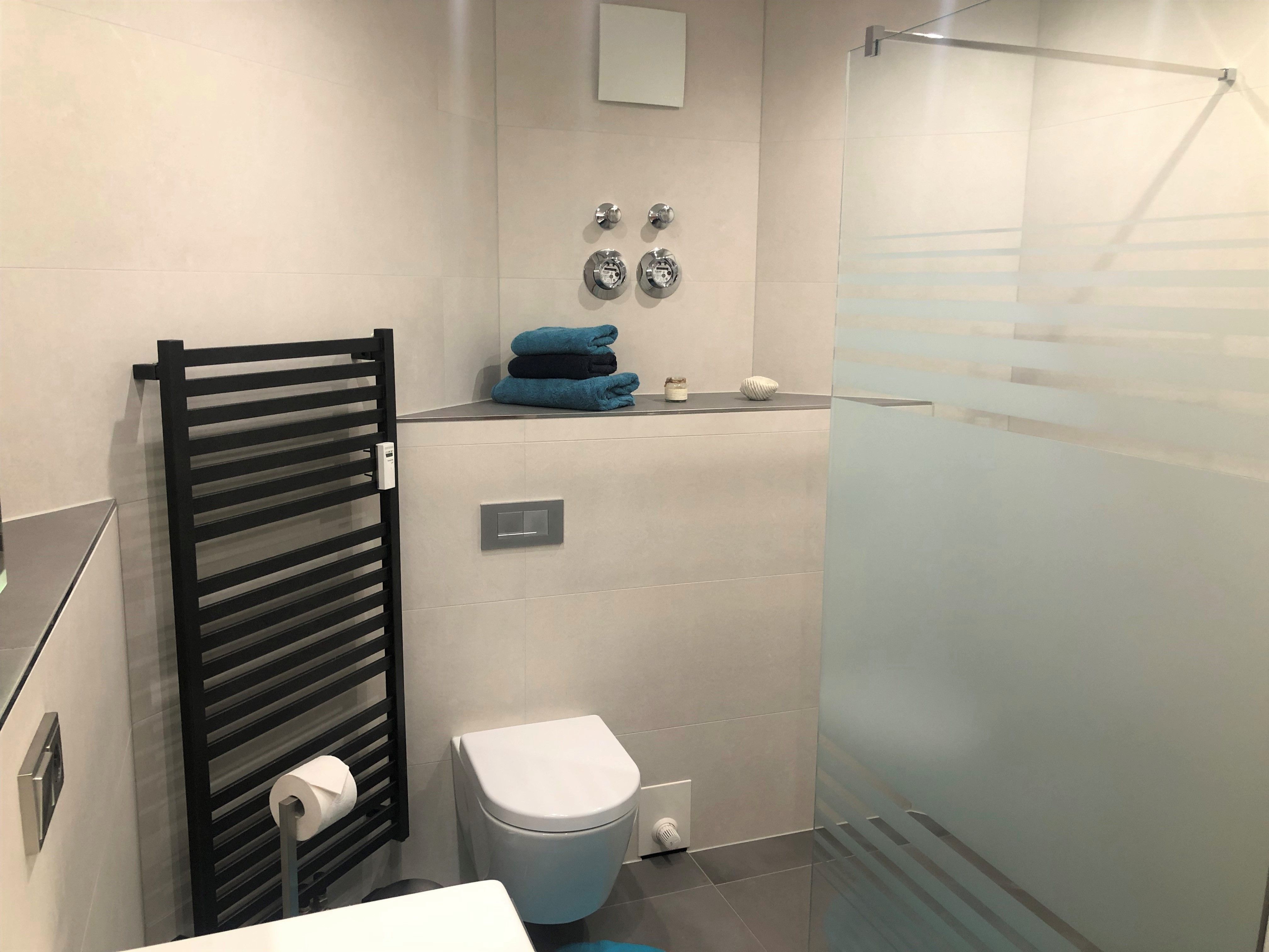 Die moderne und helle 2-Raum-Ferienwohnung verfügt über einen großzügigen Wohn-Essbereich mit gemütlicher Couch und FLAT-TV sowie einem Esstisch. Die offene Küche ist mit einem Cerankochfeld, Backofen, Geschirrspüler, Kühlschrank mit kleinem Gefrierfach, Mikrowelle, Toaster, Wasserkocher, Eierkocher und Filterkaffeemaschine ausgestattet. Das separate Schlafzimmer verfügt über ein Doppelbett, einen zusätzlichen FLAT-TV und einen großen Kleiderschrank für Ihre Urlaubsgarderobe. Ein verdunkelndes Plissee und Insektenschutzgaze sorgen für ungestörten Schlaf. Das moderne Badezimmer erwartet Sie mit einer bodengleichen Walk-In Dusche, Waschtisch, Handtuchheizung, WC und Fön. Vom Wohnbereich gelangen Sie auf die sonnige, möblierte Terrasse. Auf Wunsch spendet eine Markise Schatten. Ein PKW-Stellplatz steht Ihnen in der hauseigenen Tiefgarage zur Verfügung. Die Erstausstattung Bettwäsche & Handtücher ist inklusive.