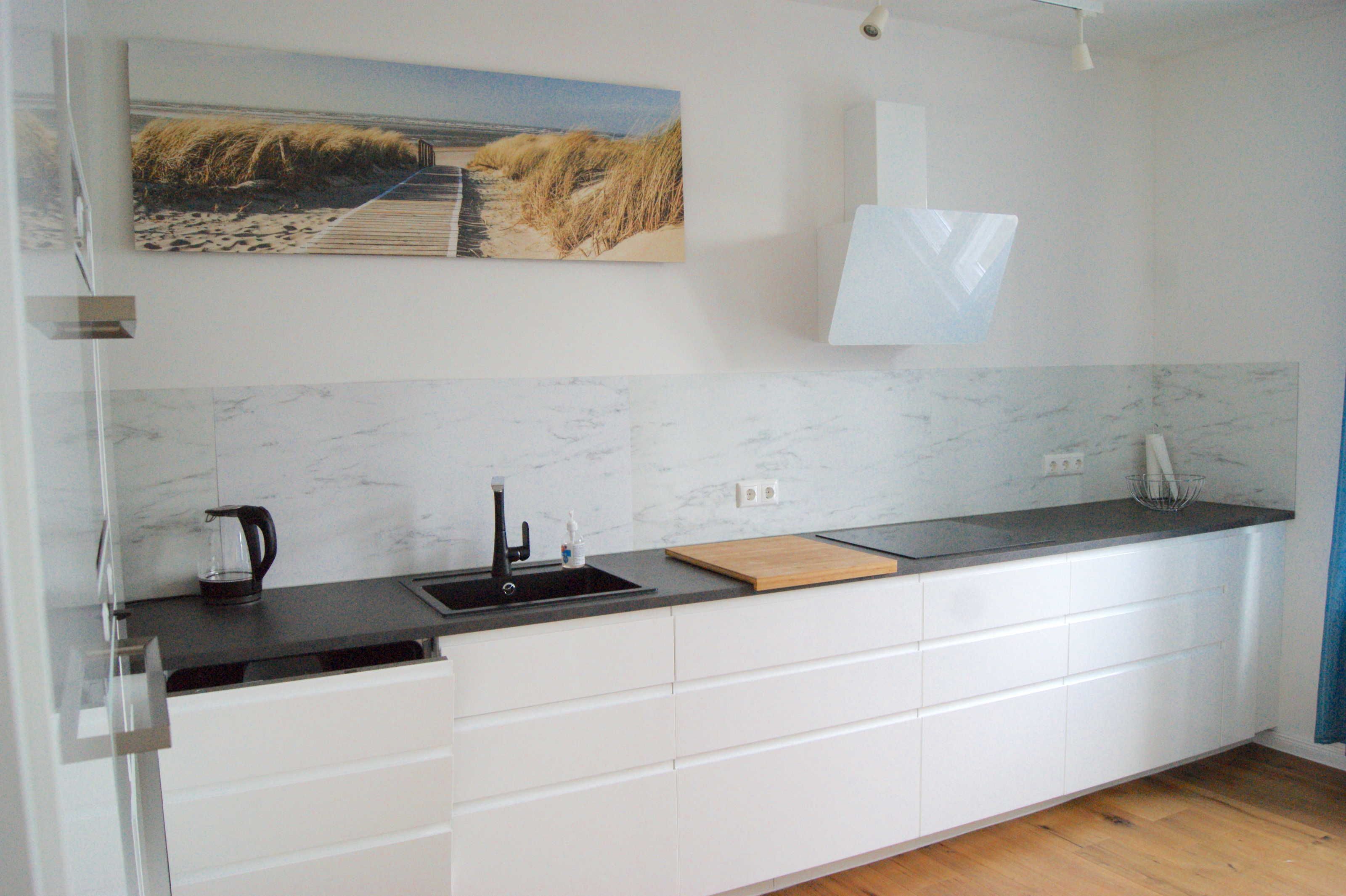 Gesellschaftsspiele, Krimis und Romane liegen bereit. Im Hauptschlafzimmer befindet sich ein 1,80 x 2,00 m großes Boxspringbett und ein begehbarer Kleiderschrank, sowie ein Bügelbrett und Bügeleisen. Im zweiten Schlafzimmer befindet sich ein 0,90 x 2,00 m Bett, welches optional zu einem 1,80 x 2,00 m Doppelbett ausziehbar ist, sowie ein Kleiderschrank und ein kleiner Schreibtisch mit Stuhl. Alternativ kann das dort vorhandene Schlafsofa als zweites Bett genutzt werden. Im Wohnzimmer befindet sich neben dem großen L-förmigen Sofa, auch ein Ohrensessel mit Beinhocker. Das Tageslichtbad ist ausgestattet mit einer 0,86 x 1,30 m großen Dusche mit niedriger Einstiegshöhe und Handtuchheizkörper. Außerdem befindet sich dort auch ein WC, sowie ein großer Waschtisch mit Spiegel und Föhn. Die einzelnen Räume sind über den zentralen Wohnungsflur erreichbar. Die gesamte Wohnung ist (außer Bad) mit einem hellen Parkettboden ausgestattet und eine Nichtraucherwohnung. Die Wohnräume sind nach Westen ausgerichtet und verfügen über sehr viel Tageslicht.