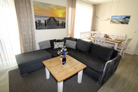 Ihre gut ausgestattete Zwei-Zimmer-Ferienwohnung für bis zu vier Personen verfügt über einen Balkon oder Terrasse, kostenfreies WLAN und sky-Empfang. Sie erreichen die Wohnung bequem mit dem Aufzug, für Ihren PKW steht ein Platz in der Tiefgarage zur Verfügung. Dort befindet sich zudem ein Waschraum mit Münzwaschmaschinen und Münzwäschetrockner und ein Platz für Ihre Fahrräder.