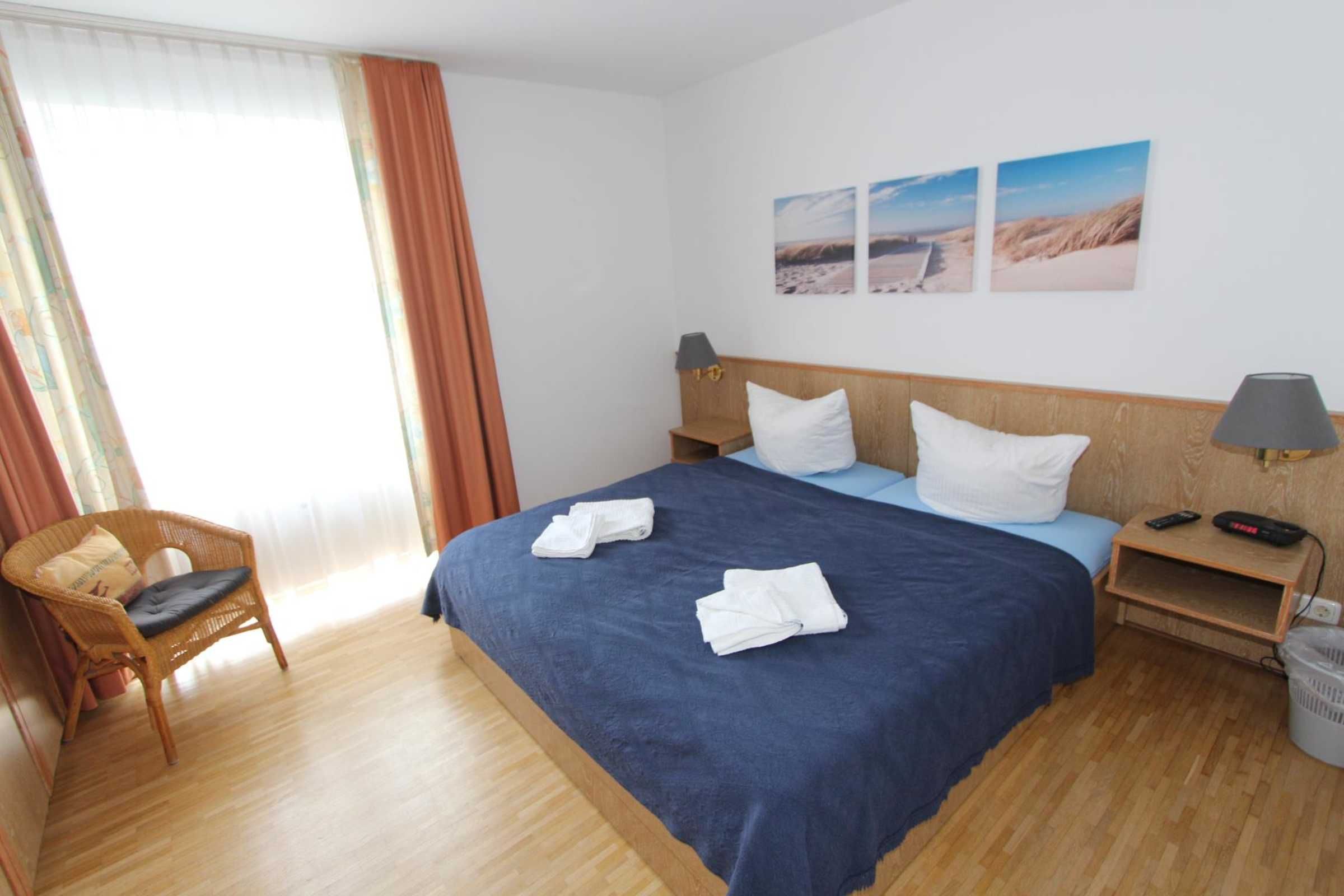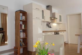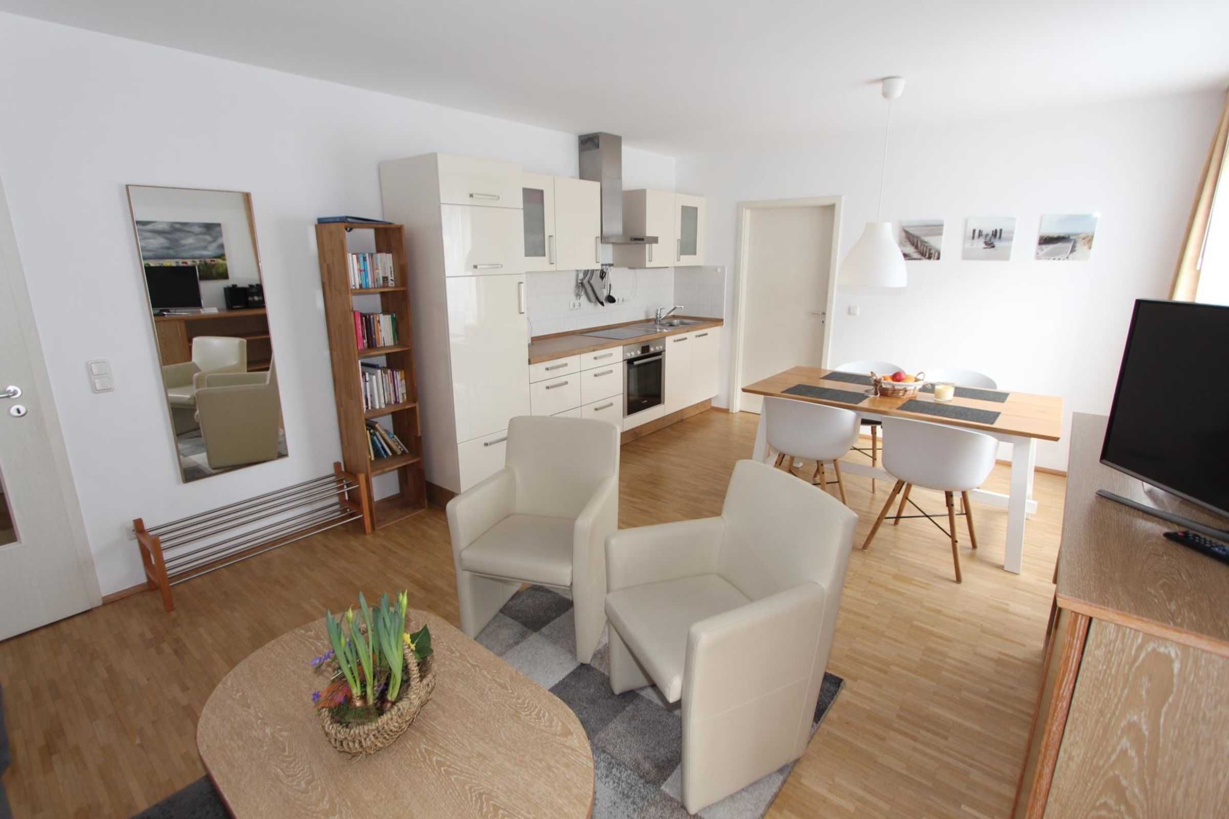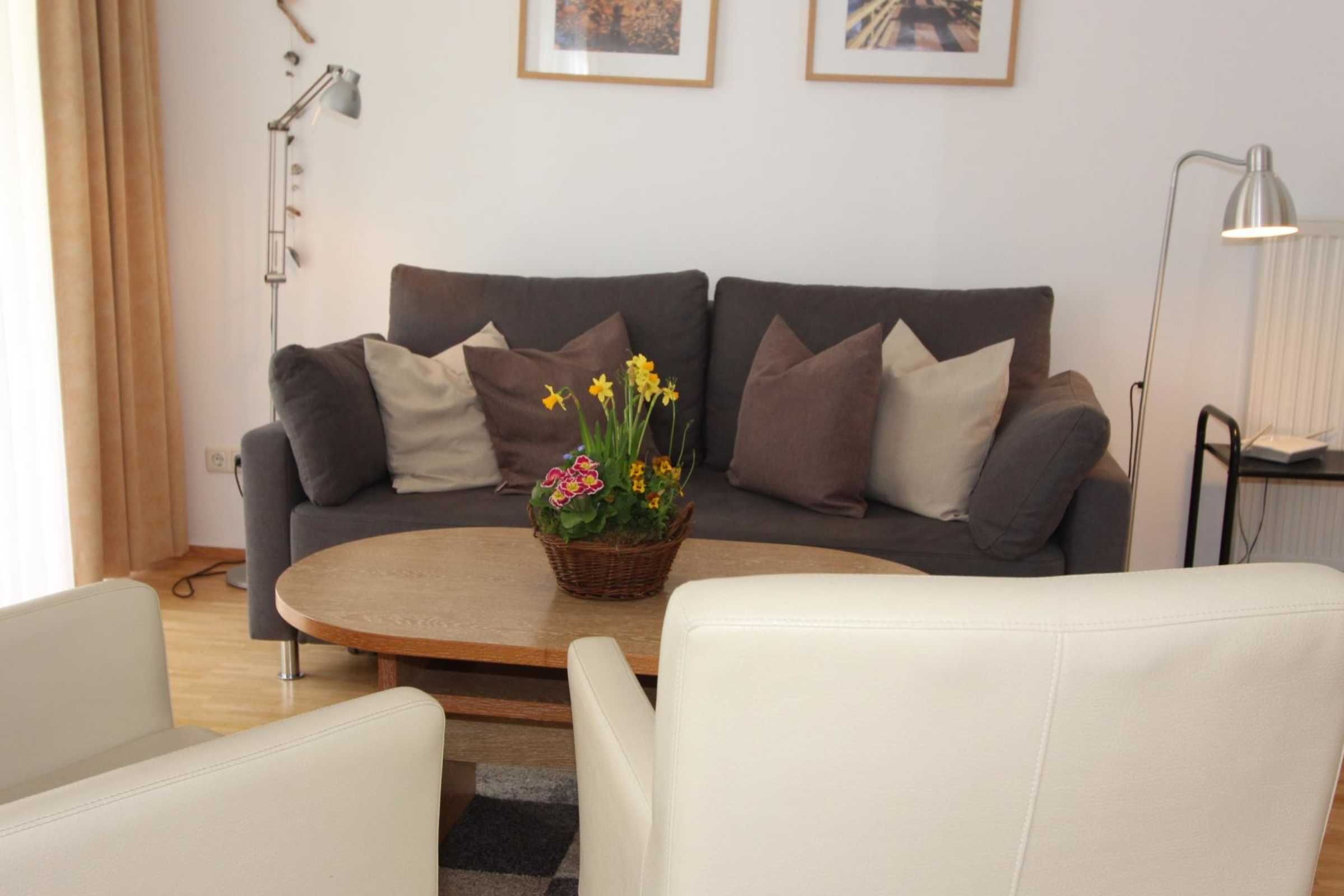 Ihre gut ausgestattete Zwei-Zimmer-Ferienwohnung für bis zu vier Personen verfügt über einen Balkon oder Terrasse, kostenfreies WLAN und sky-Empfang. Sie erreichen die Wohnung bequem mit dem Aufzug, für Ihren PKW steht ein Platz in der Tiefgarage zur Verfügung. Dort befindet sich zudem ein Waschraum mit Münzwaschmaschinen und Münzwäschetrockner und ein Platz für Ihre Fahrräder.