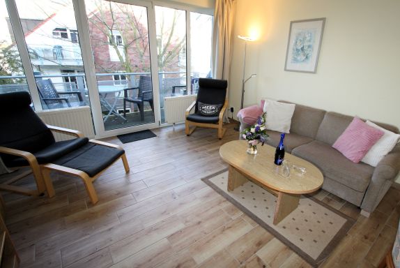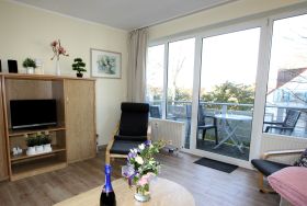 Ihre gut ausgestattete Zwei-Zimmer-Ferienwohnung für bis zu vier Personen verfügt über einen Balkon oder Terrasse, kostenfreies WLAN und sky-Empfang. Sie erreichen die Wohnung bequem mit dem Aufzug, für Ihren PKW steht ein Platz in der Tiefgarage zur Verfügung. Dort befindet sich zudem ein Waschraum mit Münzwaschmaschinen und Münzwäschetrockner und ein Platz für Ihre Fahrräder.