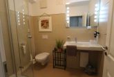 Das Bad mit einer schönen Dusche und hochwertigen Fliesen bildet einen weiteren Akzent dieser geschmackvollen Wohnung.
