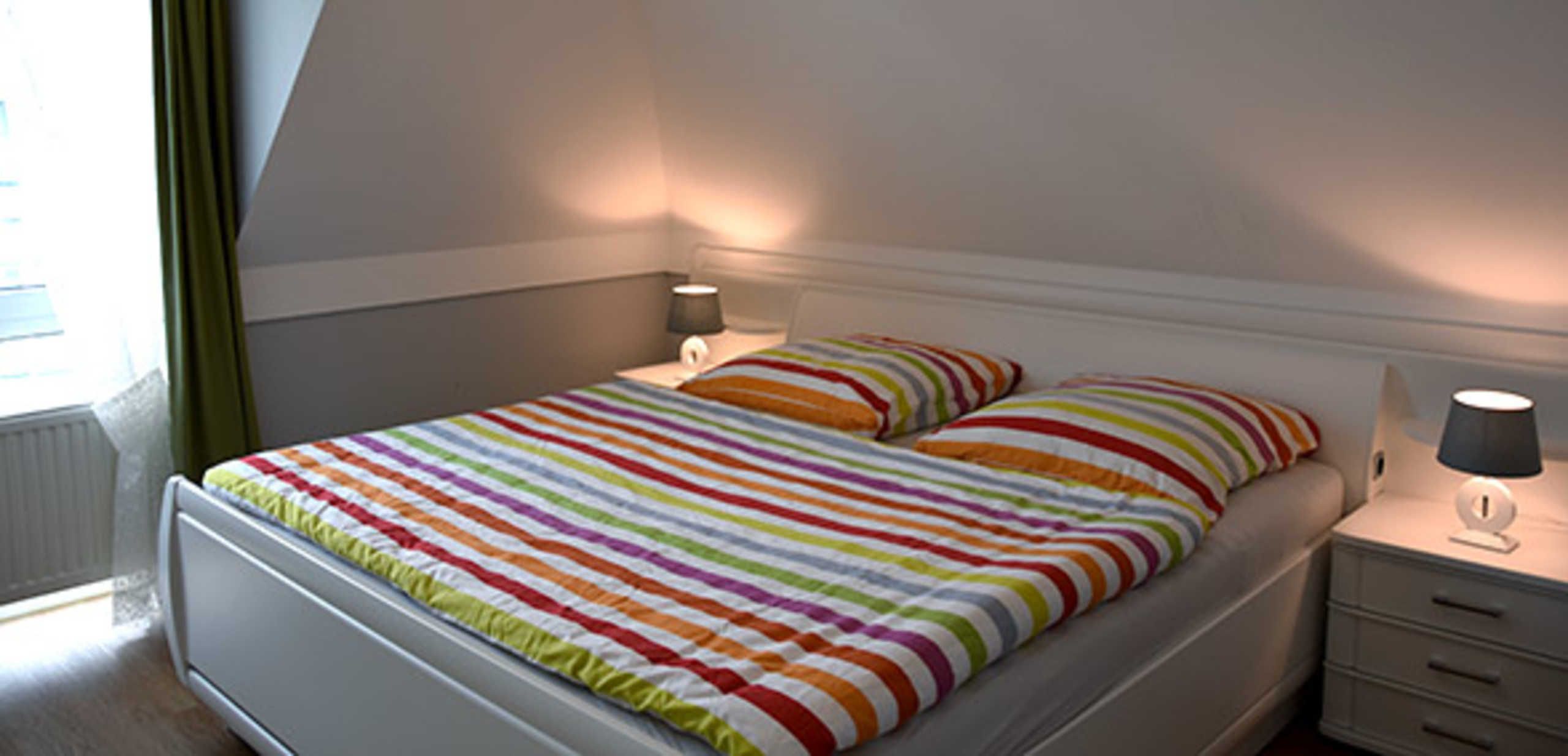 Einen weiteren Flachbildfernseher können Sie im separaten Schlafzimmer nutzen. Das bequeme Doppelbett mit hochwertigen Matratzen bietet Ihnen einen hohen Schlafkomfort. Im dazugehörigem Kleiderschrank und Kommode finden Sie ausreichend Platz für Ihre Kleidung und persönlichen Dinge.