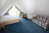 Dachgeschoss. Schlafzimmer mit Doppelbett, Wohn-Schlafraum mit bequemer Doppelbettcouch, separater