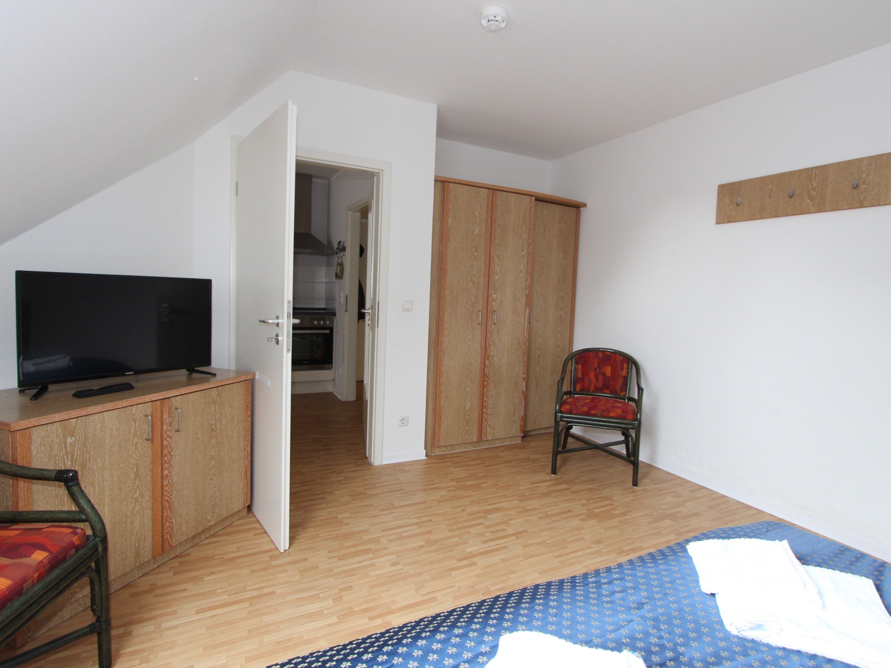 Sie wohnen in einer hellen 2-Raum Ferienwohnung für bis zu 4 Personen auf ca. 50 m² im Dachgeschoss. Die Wohnung verfügt über einen Schlafraum mit Doppelbett und TV inkl. DVD, einen Wohn-/Schlafraum mit bequemer Doppelbettcouch, großem TV-Flachbildschirm (inkl. sky-Empfang) und Telefon, einem separaten Essplatz, einen voll ausgestatteten Küchenbereich (inkl. Geschirrspülmaschine), eine moderne Dusche/WC sowie Balkon. Außerdem gibt es eine Tiefgarage (Stellplatz inkl.), Lift, Münzwaschmaschine/-trockner, Schwimmbad (freie Benutzung), Sauna und Dampfbad (gegen Gebühr).