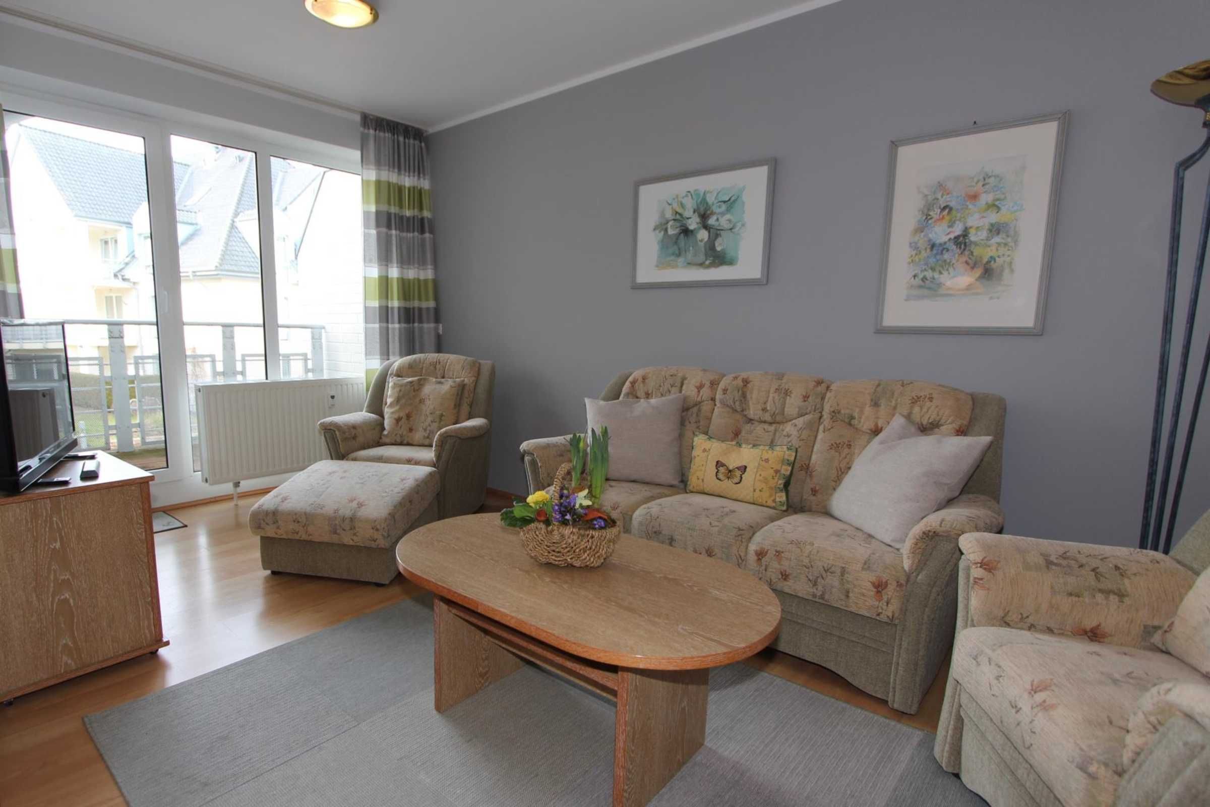 Ihre gut ausgestattete Zwei-Zimmer-Ferienwohnung für bis zu vier Personen verfügt über einen Balkon oder Terrasse, kostenfreies WLAN und sky-Empfang. Sie erreichen die Wohnung bequem mit dem Aufzug, für Ihren PKW steht ein Platz in der Tiefgarage zur Verfügung. Dort befindet sich zudem ein Waschraum mit Münzwaschmaschinen und Münzwäschetrockner und ein Platz für Ihre Fahrräder.