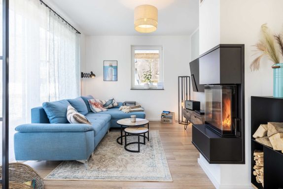 Die großzügige Außensauna mit Relaxbereich, der sprudelnde Whirlpool im Bad unter Reet oder der wohlig wärmende Kamin - das Wohlfühlprogramm im Haus Hygge haben unsere Gäste gleich mitgebucht. Auf 108 qm verteilt, gibt es ausreichend Platz in 3 hyggeligen Schlafzimmern, 2 Bädern und einem super gemütlichen Wohn- Essbereich.