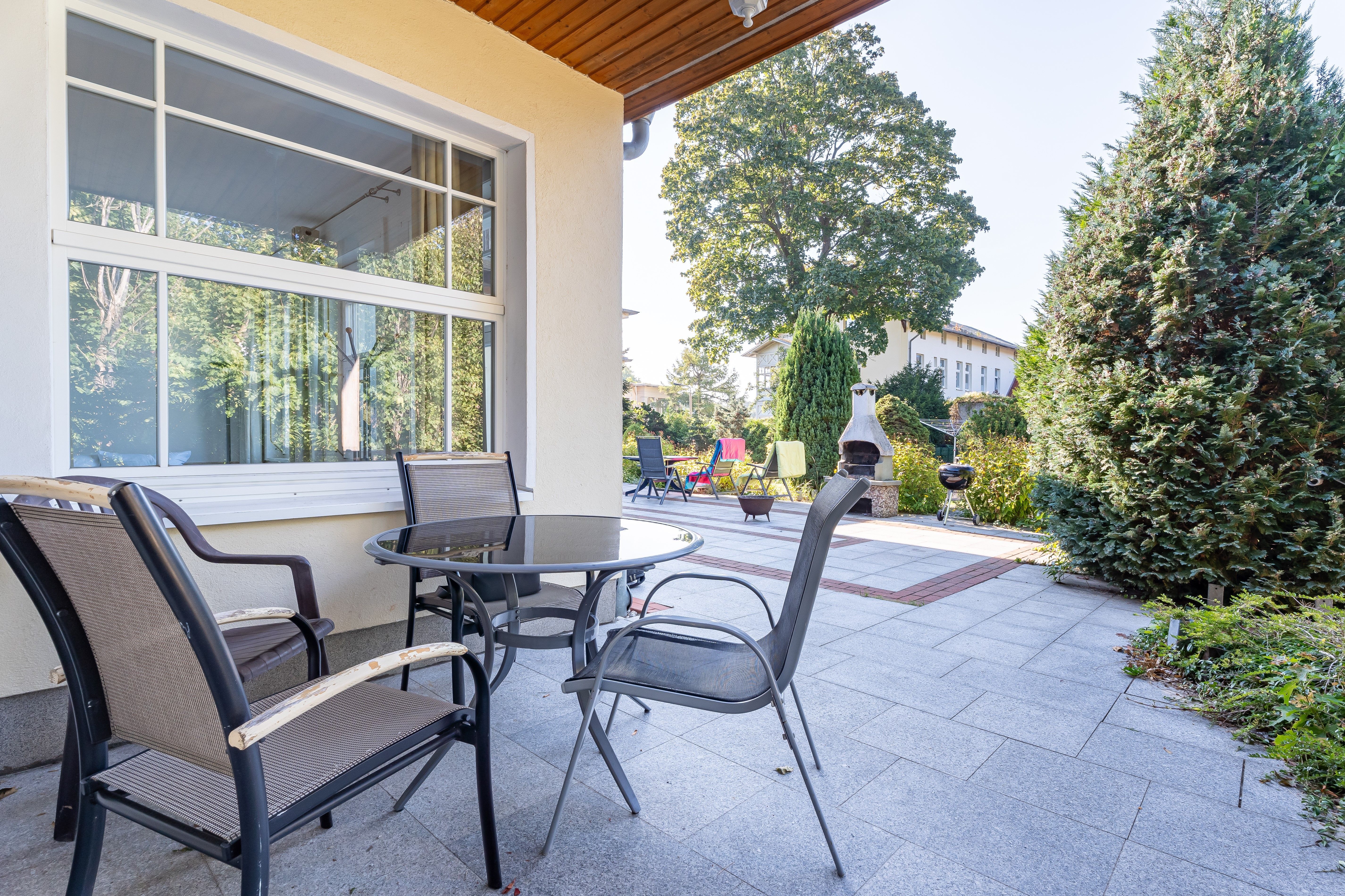 Zur Ferienwohnung gehört eine Terrasse mit Grillmöglichkeit. Ein Parkplatz befindet sich auf dem Grundstück. Für Fahrräder gibt es selbstverständlich auch einen Platz zum unterstellen. Nach Verfügbarkeit stehen für die Villa sowie dem Nebengelass 2 eigene Strandkörbe am Strand zur Vermietung.