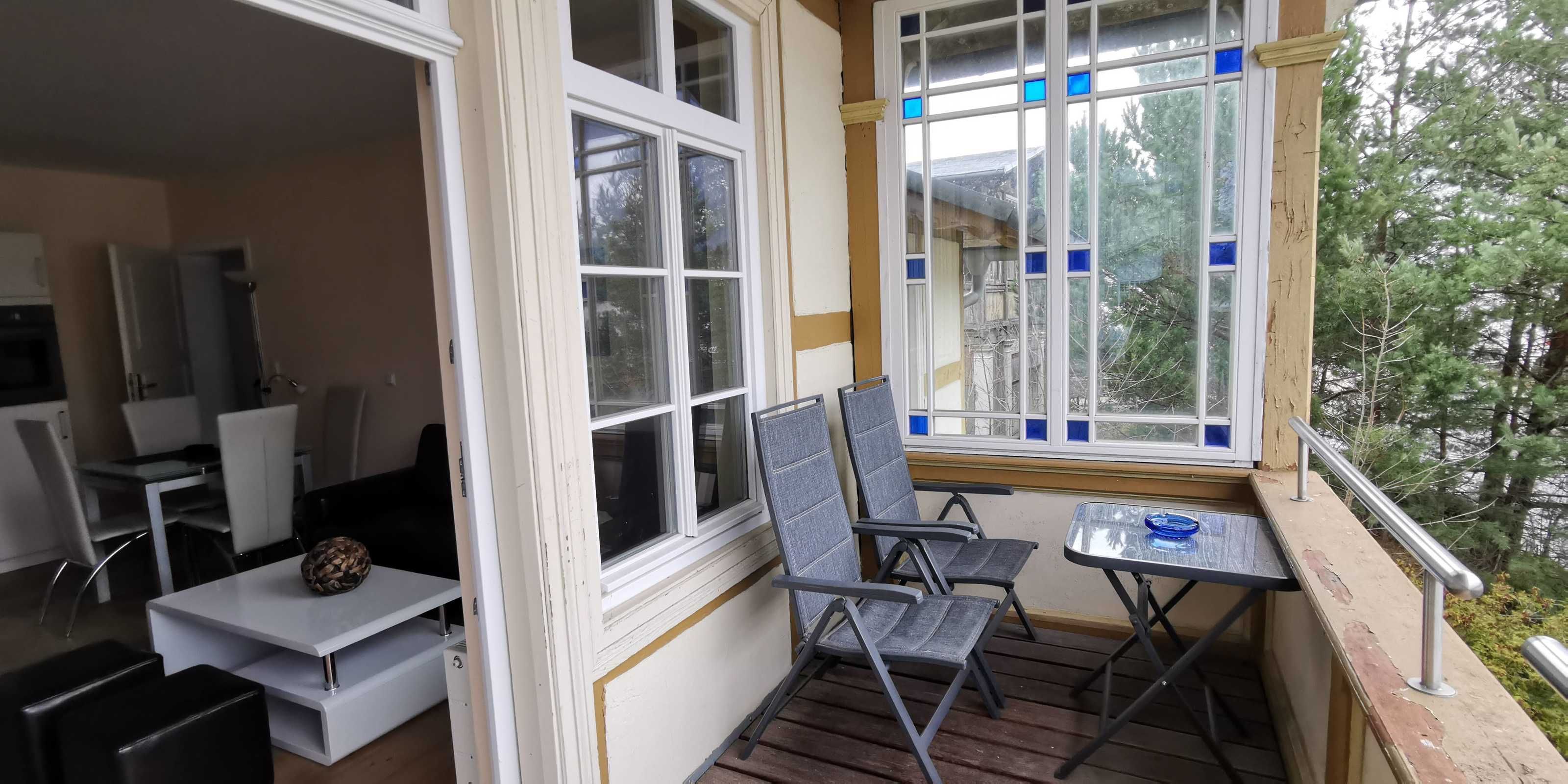 Sie suchen einen Rückzugsort für etwas Zeit zu zweit? Dann ist die Kajüte genau das Richtige für Sie. Sie gelangen durch eine kleine Treppe in der liebevoll sanierten Villa ins Obergeschoß, wo Sie Ihre 52qm große Ferienwohnung mit einem kleinen, gemütlichen Schlafzimmer mit einem 140 cm breiten Doppelbett und einem hellen Wohnzimmer finden werden. Lassen Sie sich von der Morgensonne auf der nach Südosten ausgerichteten Balkonveranda verwöhnen. Von hier aus haben Sie einen großartigen Blick auf das große, grüne Grundstück der Villa. Wahrscheinlich können Sie von hier das Meer schon riechen. Nur 100 Meter trennen Sie und die Ostsee. Der kilometerlange Sandstrand der Insel lädt zu einem ausgiebigen Spaziergang entlang der Kaiserbäder ein. Kommen Sie dann erschöpft zurück, wartet schon eine heiße Dusche oder auch eine kleine Auszeit in der großzügigen Badewanne auf Sie. Wie wäre es zum Ausklang eines romantischen Abends mit einem Glas Wein am kleinen Bio-Kamin? Bei uns bleiben keine Wünsche offen. Kommen Sie mit dem Auto oder vielleicht ganz sportlich mit dem Fahrrad? Für beides haben wir selbstverständlich einen Platz auf dem Grundstück. Das ist noch längst nicht alles. Sie finden bei uns: Gratis-WLAN, LED-TV, DVD-Player, DVD-Filme, Bücher, eine Einbauküche mit Geschirrspüler, Kühl- und Gefrierkombination, Backofen mit Ceranfeld, Wasserkocher, Kaffeemaschine, Toaster, Föhn und für die kleinsten Gäste Babybett, Babyhochstuhl, klappbare Wickelauflage und vieles mehr.