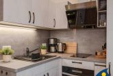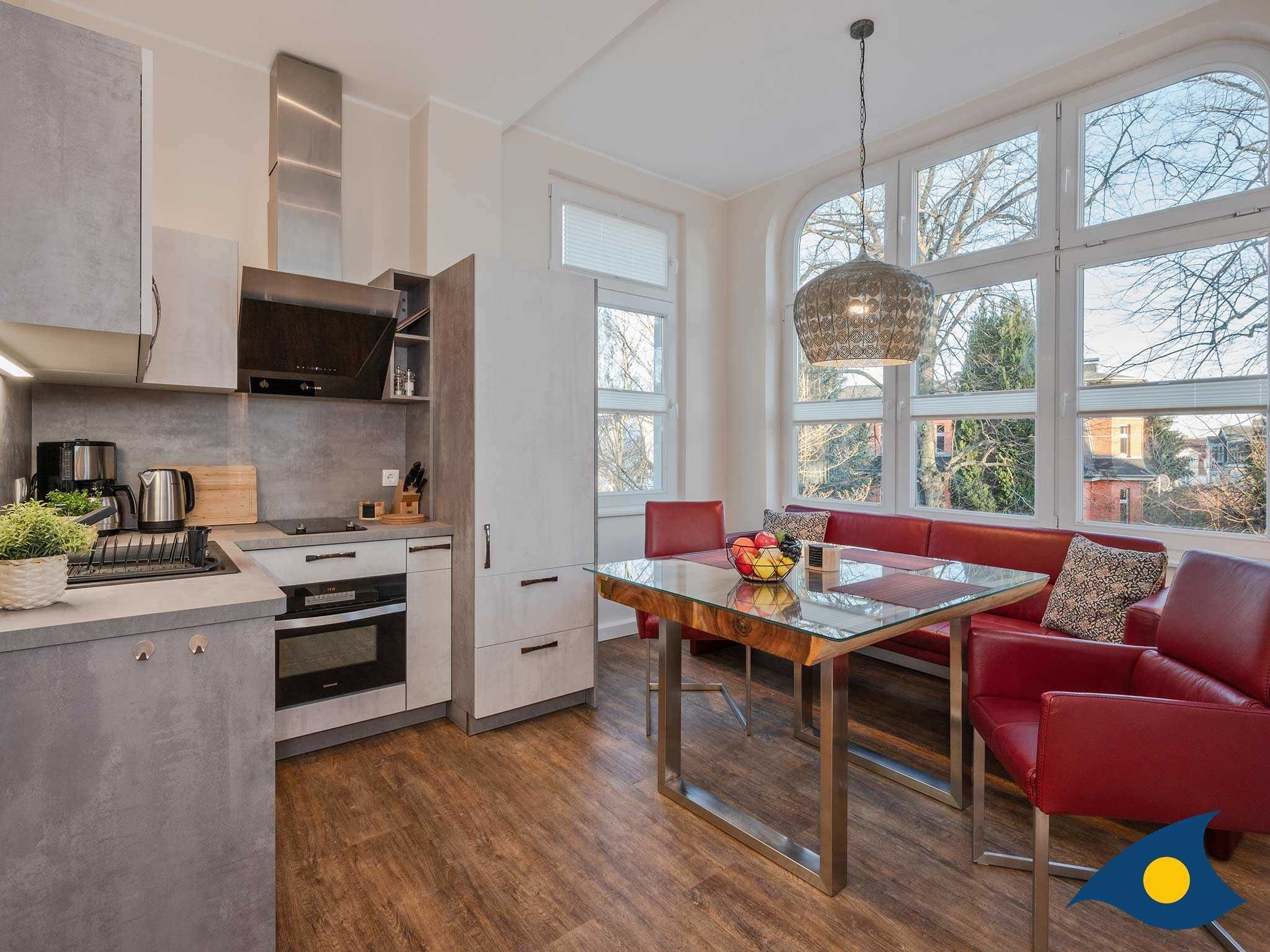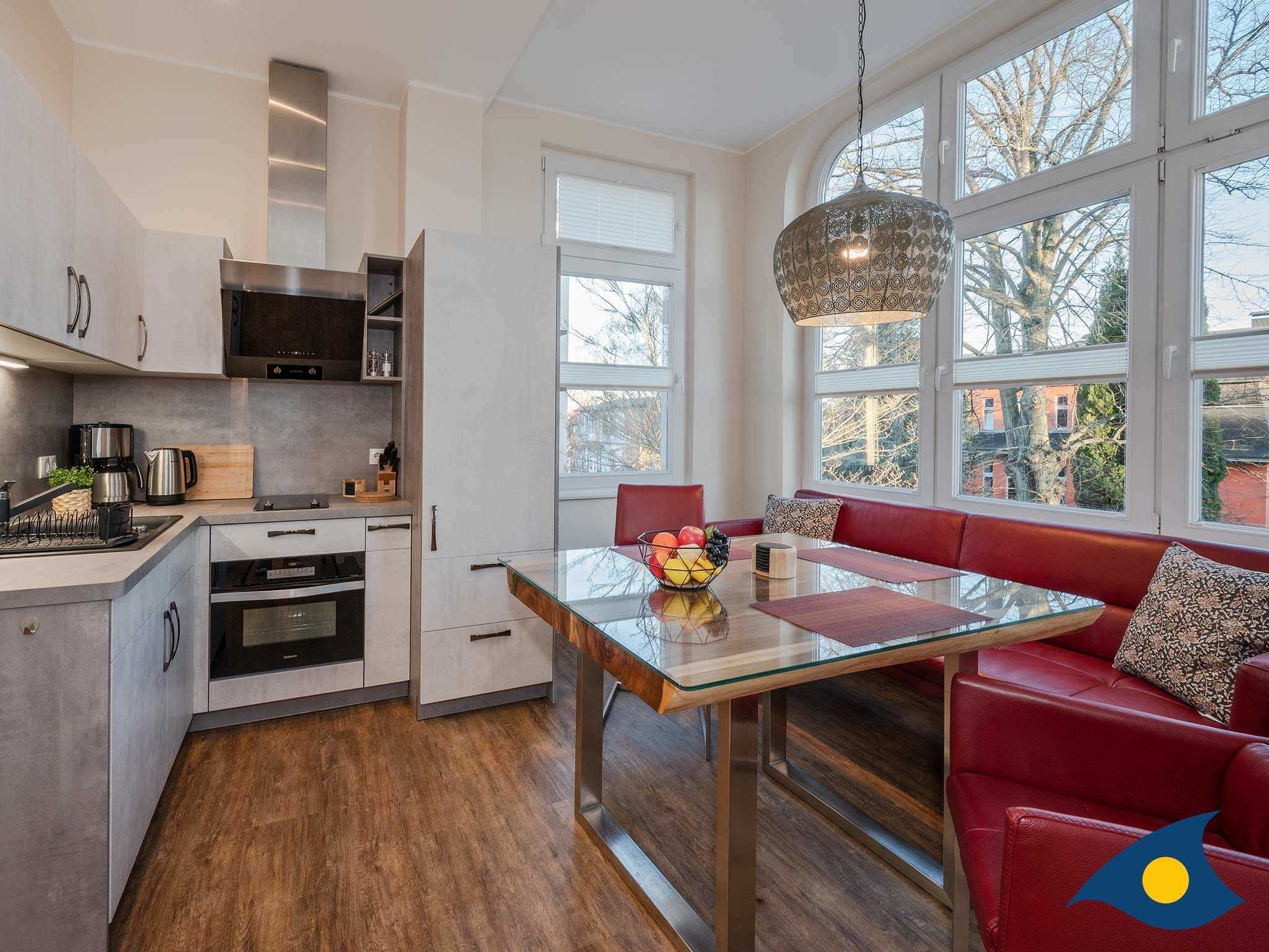 Eine komplett ausgestattete, offene Küche mit Kaffeemaschine, Herd, und Toaster, ein modernes Badezimmer mit Dusche sowie ein großzügiges Schlafzimmer mit Doppelbett, bieten Ihnen alles, was Sie für einen perfekten Usedom Urlaub in Seebad Bansin benötigen.