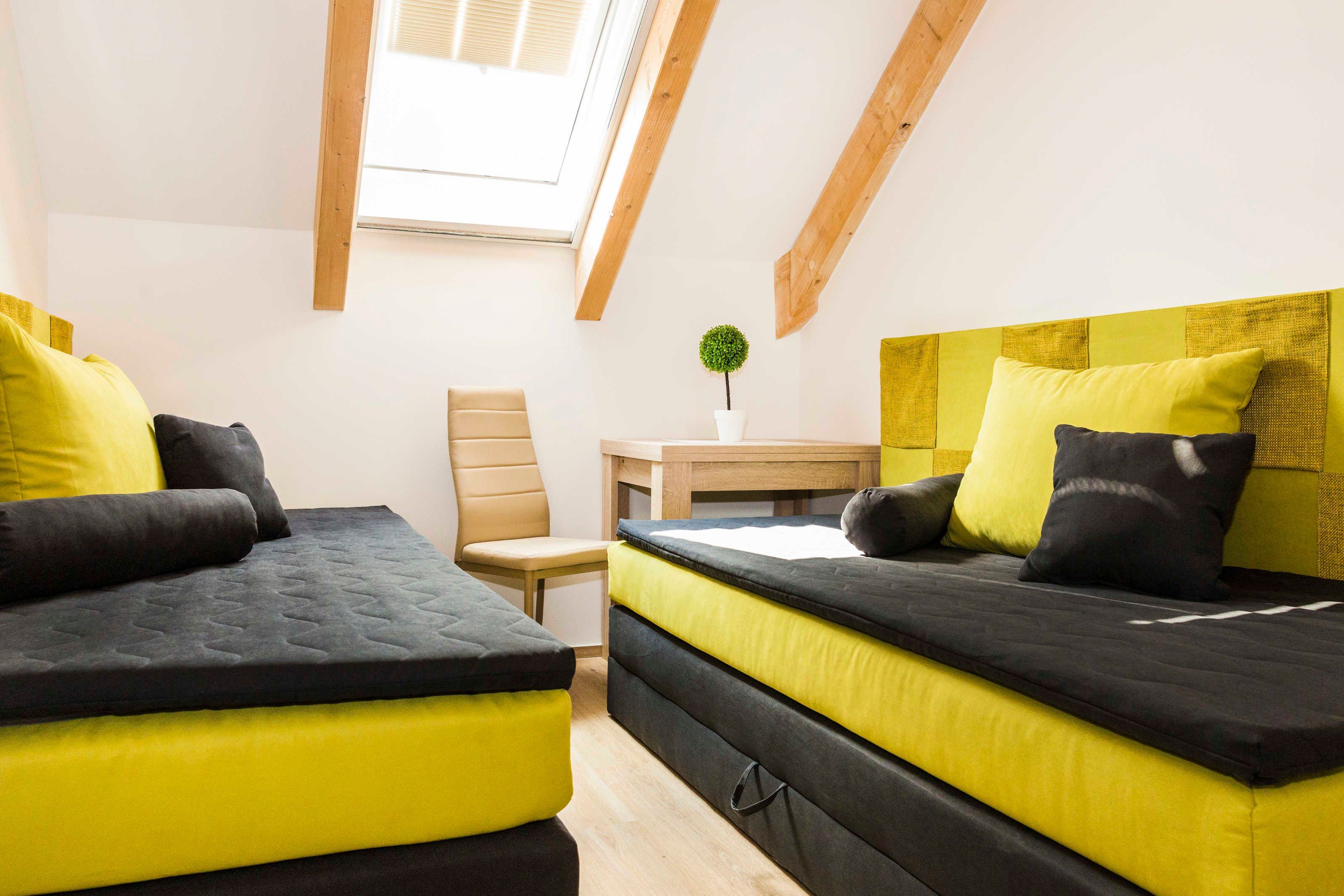Im dritten Schlafzimmer stehen Ihnen 2 einzelne Boxspringbetten (90cm x 200cm) zur Verfügung.